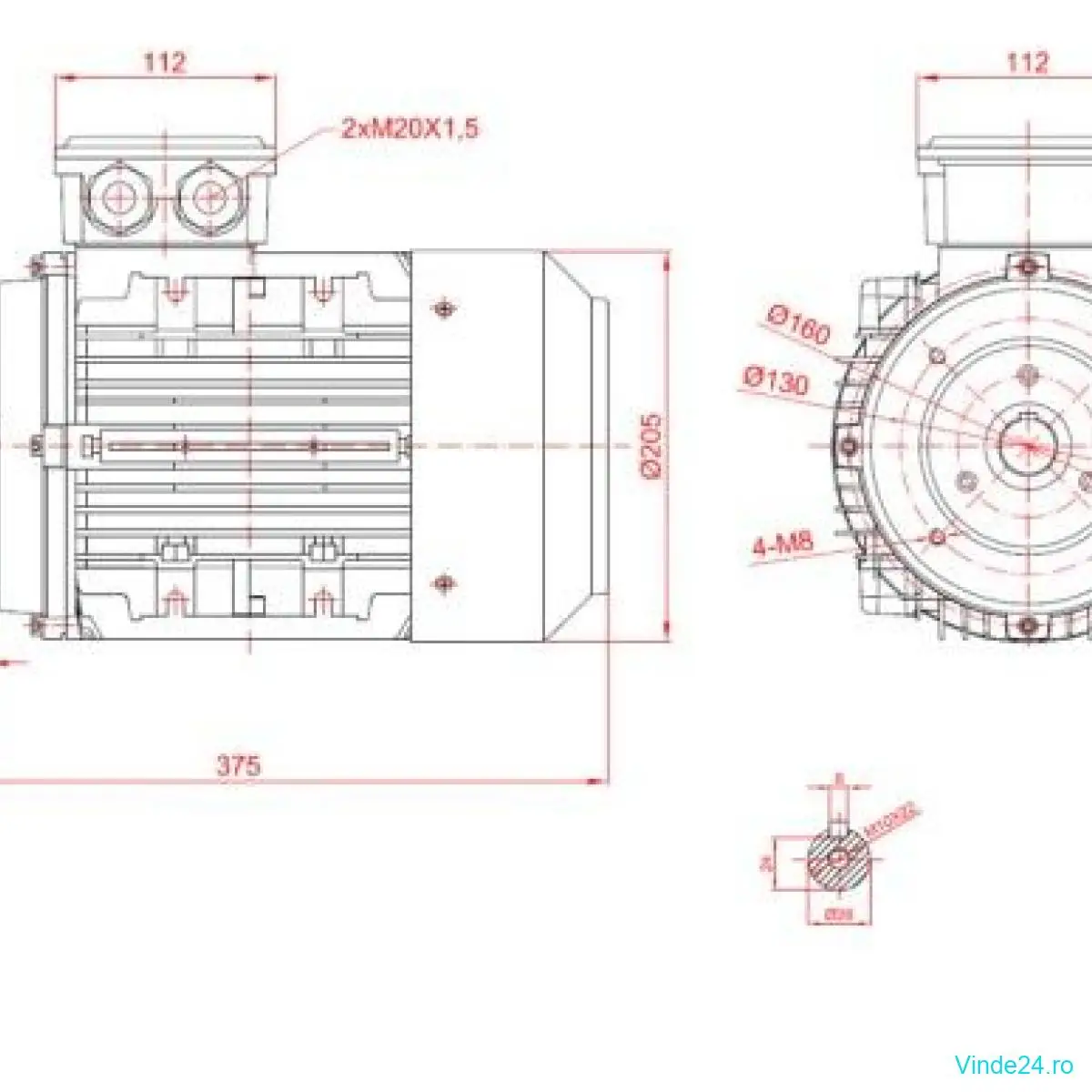 Putere: 7,5kw; Turatie: 1400rpm; Gabarit: 132; Diametru ax: 38mm; Fixare: Flansa mica; Prindere: B14; Diametru Flansa: 200mm; Carcasa din: Aluminiu; Bobinaj din cupru; uz industrial; Performanta Optima intre Forta si Turatie: Motoare Electrice 4 Poli   Motoarele electrice cu 4 poli, avand o viteza nominala de 1400 RPM, reprezinta alegerea standard in aplicat...
