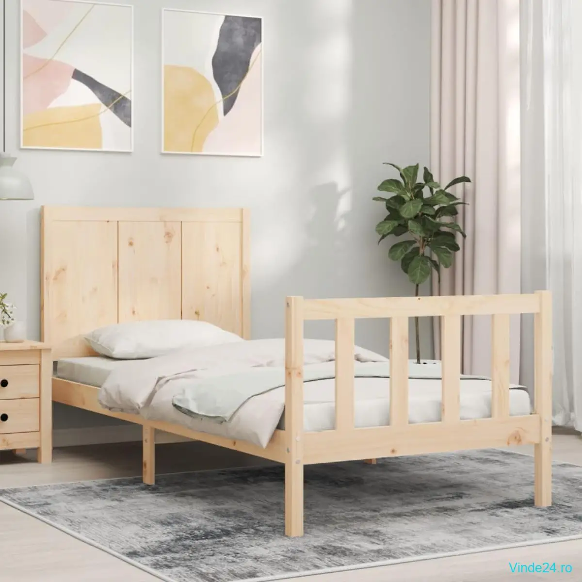 Bucurați-vă de un somn bun cu acest cadru de pat din lemn! Este o completare practică și decorativă pentru interiorul locuinței dvs.