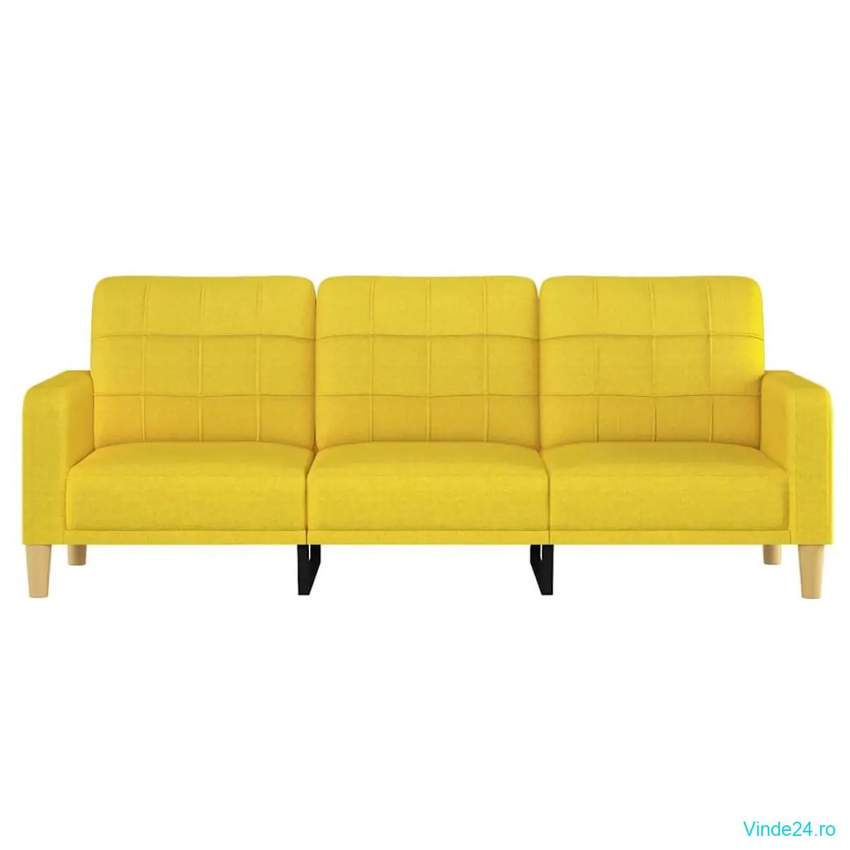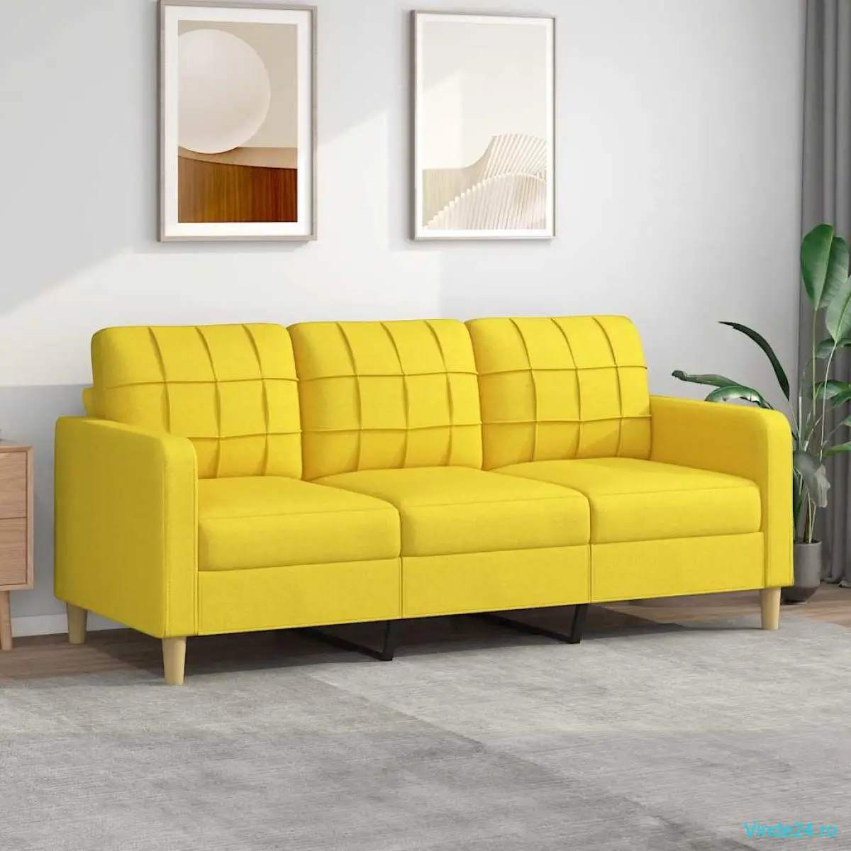 Canapea cu 3 locuri, galben deschis, 180 cm, material textil