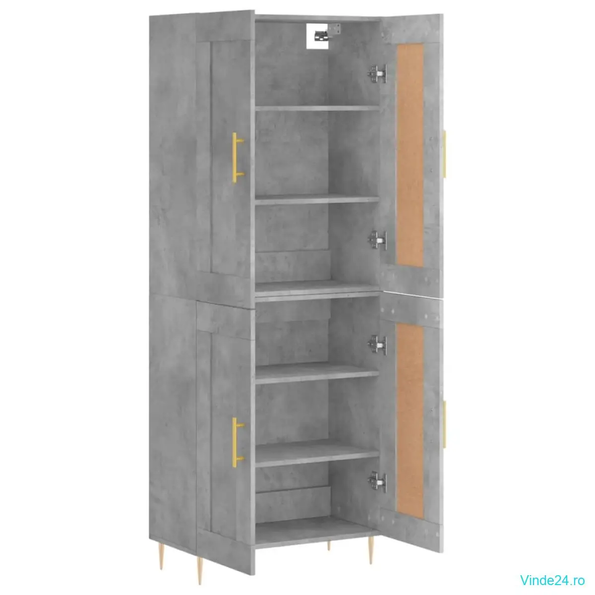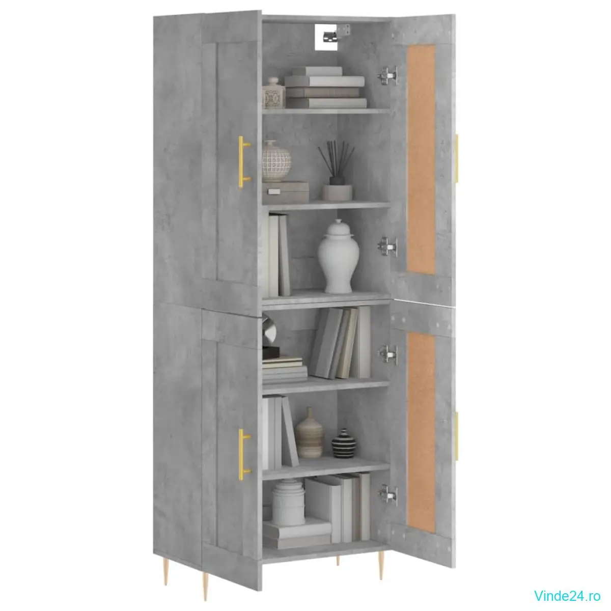 Dulap înalt, gri beton, 69,5x34x180, lemn compozit