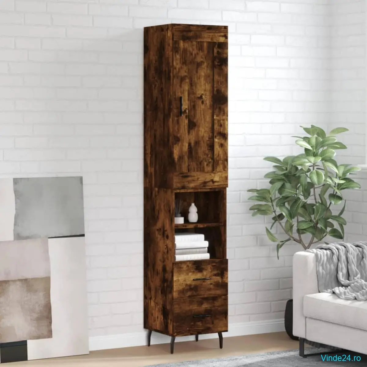 Dulap înalt, stejar fumuriu, 34,5x34x180 cm, lemn prelucrat