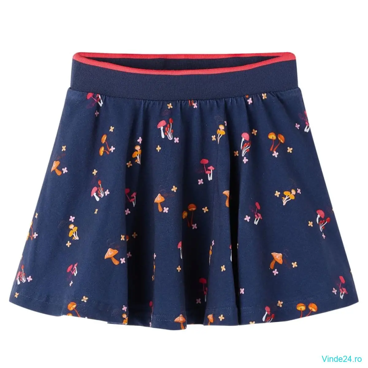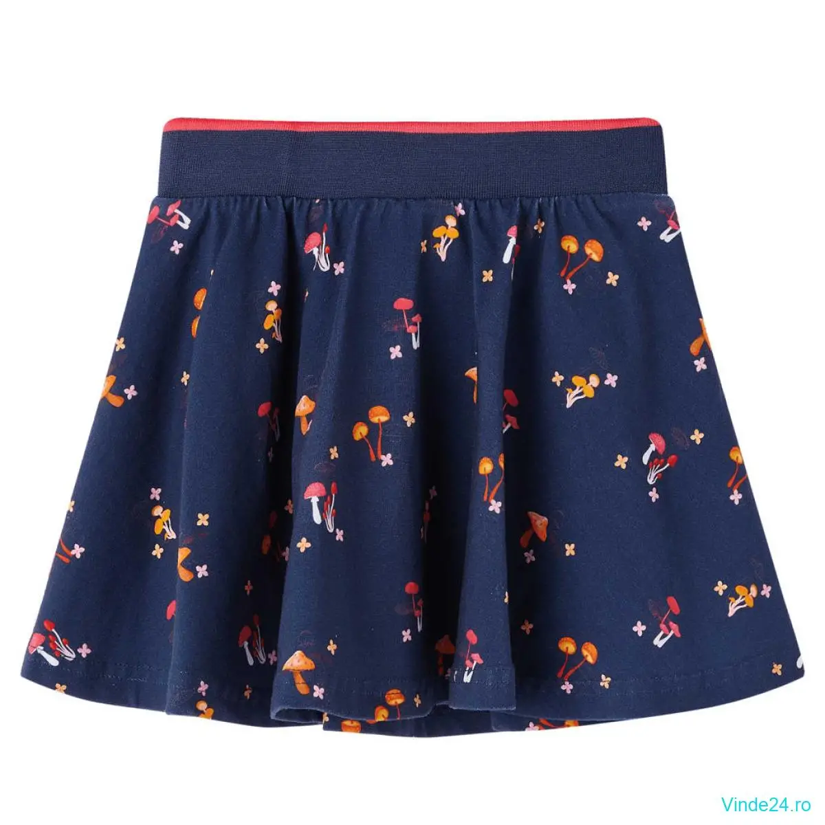 Această fustă pentru copii cu pliuri, are o talie elastică îngustă și un tiv evazat. Fusta pentru fetițe este imprimată cu ciuperci peste tot. Fusta pentru copii este confecționată din bumbac moale și elastan, pentru confort și respirabilitate.
