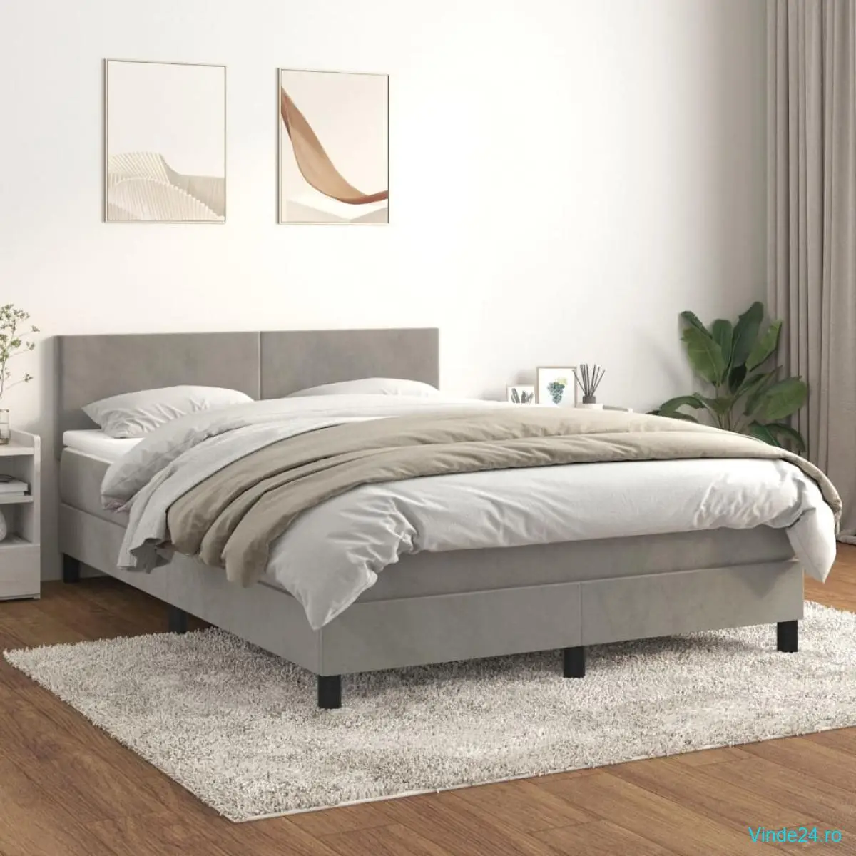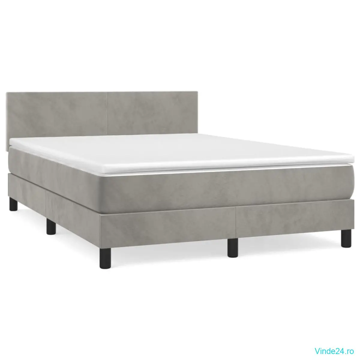 Pat box spring cu saltea, gri deschis, 140x190 cm, catifea