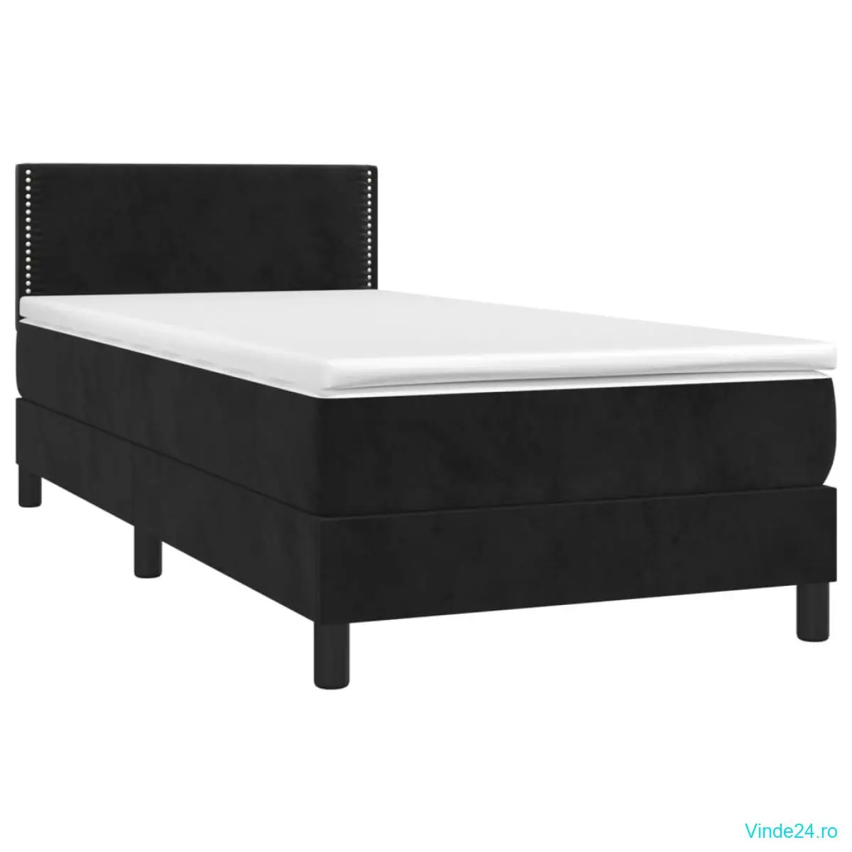 Pat continental cu saltea și LED, negru, 80x200 cm, catifea