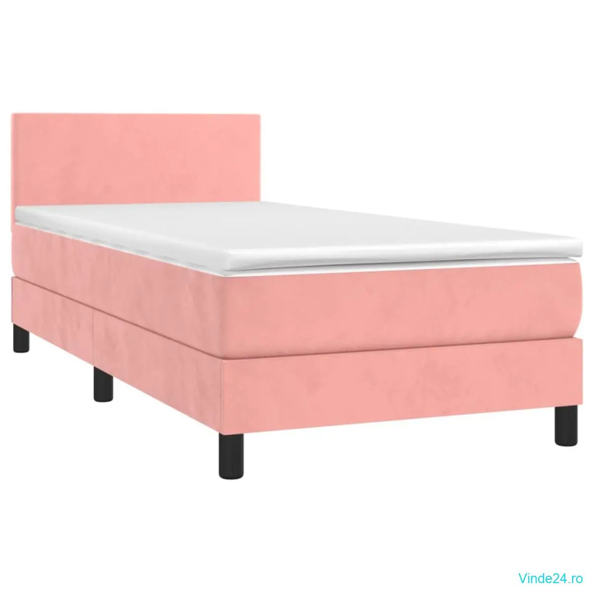 Pat continental cu saltea & LED, roz, 80x200 cm, catifea