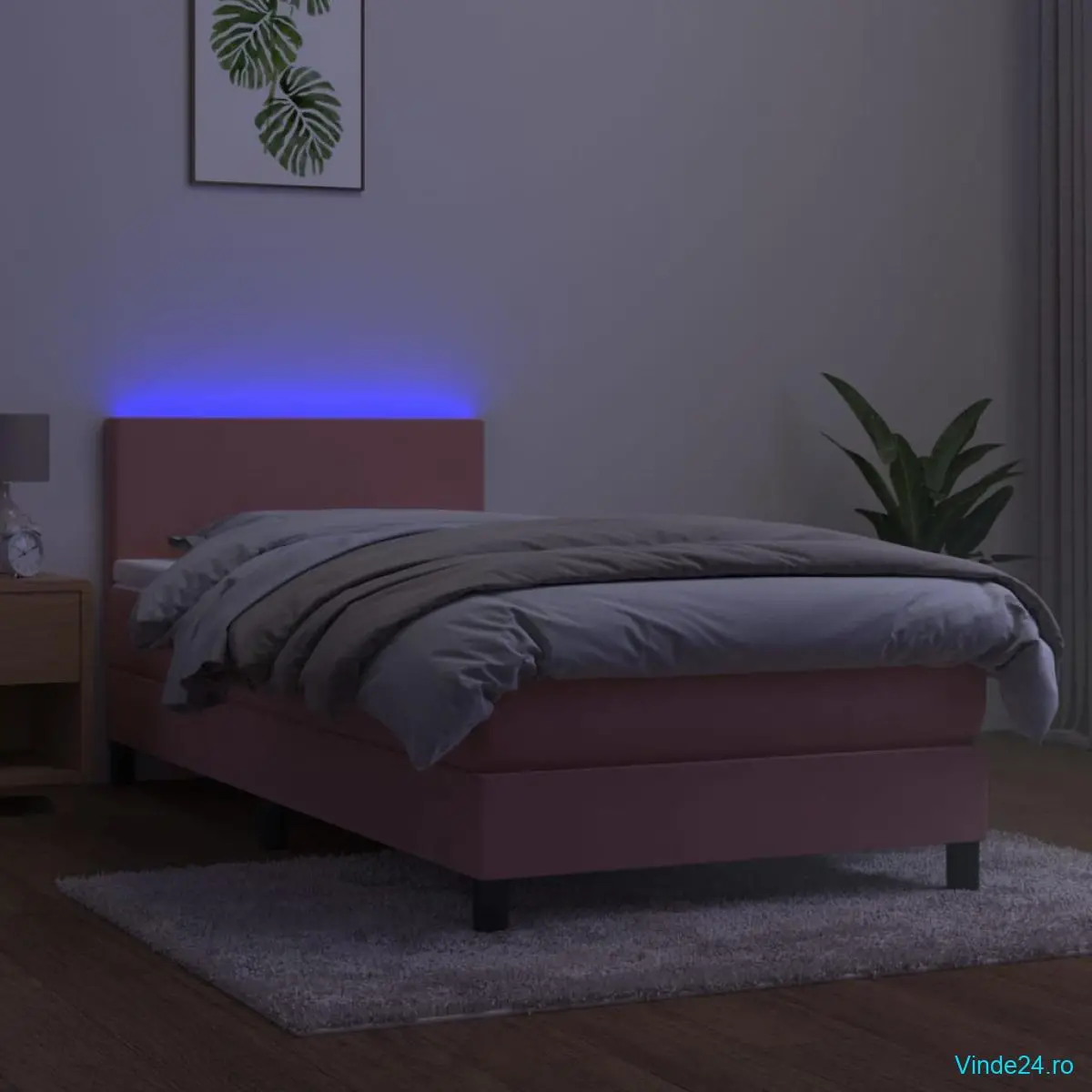 Folosiți acest pat cu arcuri, cu saltea și LED-uri, pentru a vă bucura de un somn odihnitor! Va fi punctul de atracție al dormitorului dvs.