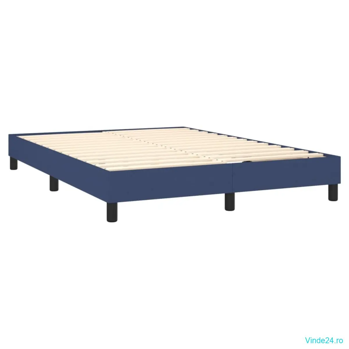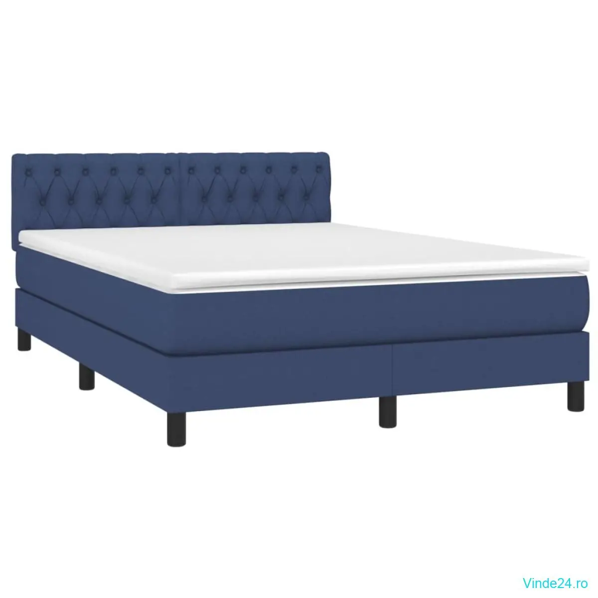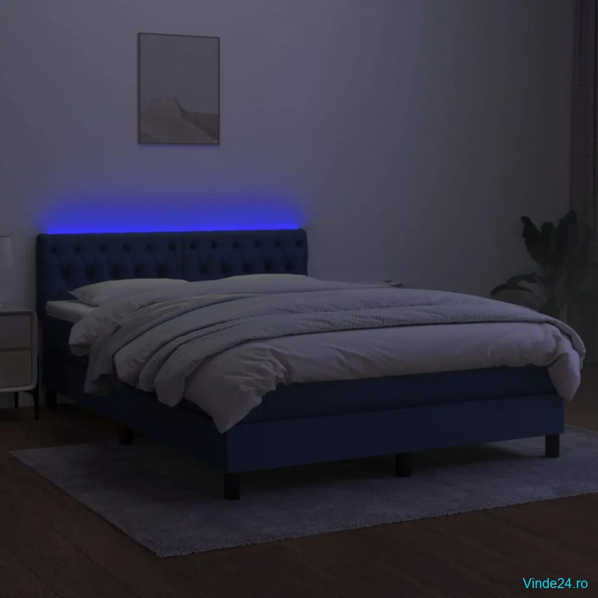 Pat cu arcuri, saltea și LED, albastru, 140x190 cm, textil