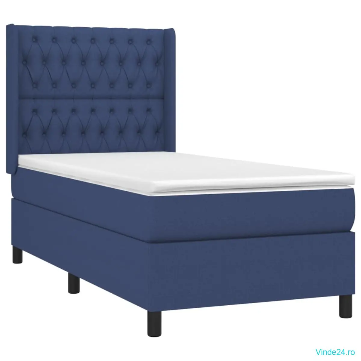 Pat cu arcuri, saltea și LED, albastru, 90x200 cm, textil