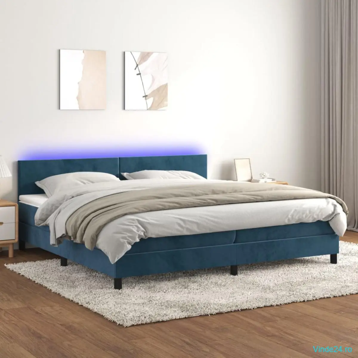 Folosiți acest pat cu arcuri, cu saltea și LED-uri, pentru a vă bucura de un somn odihnitor! Va fi punctul de atracție al dormitorului dvs.