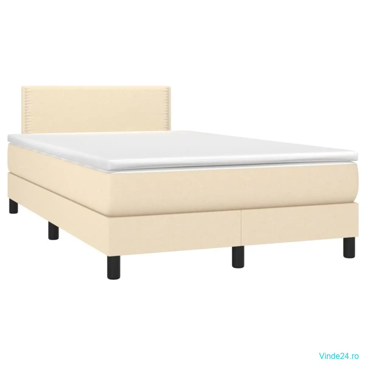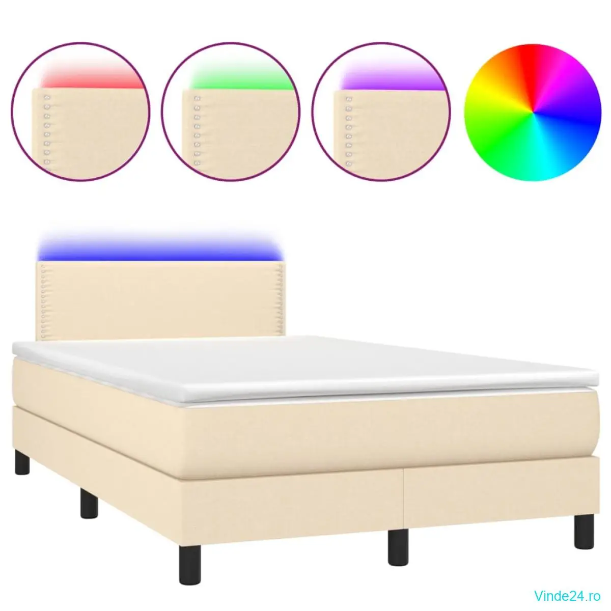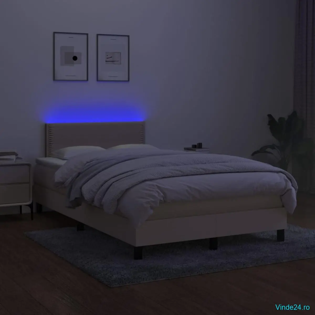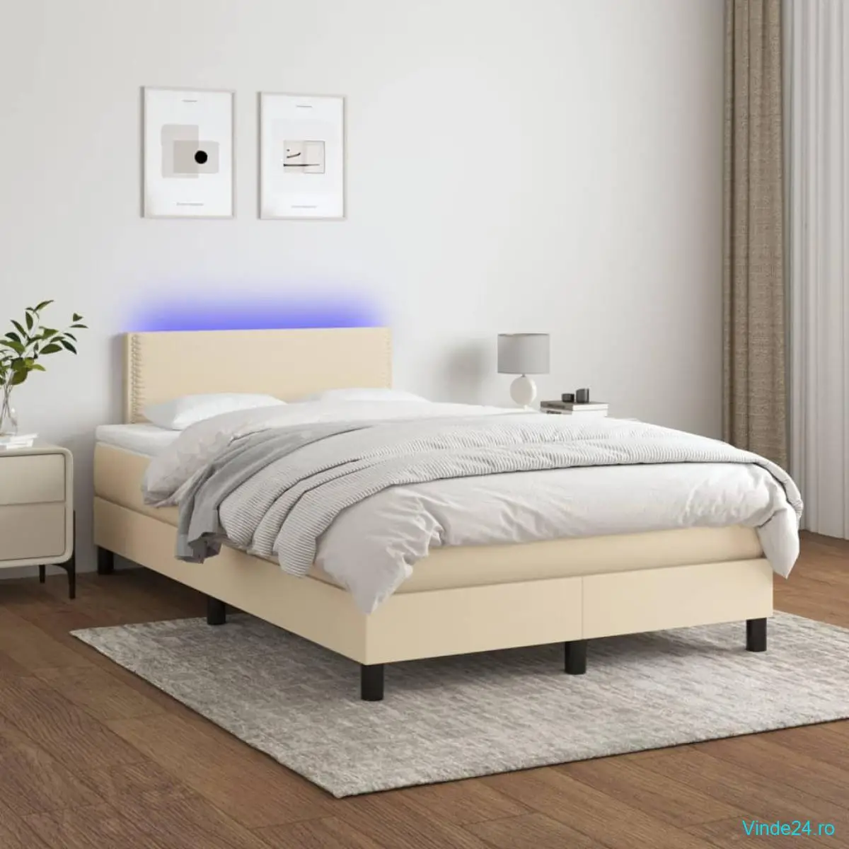 Pat cu arcuri, saltea și LED, crem, 120x200 cm, textil