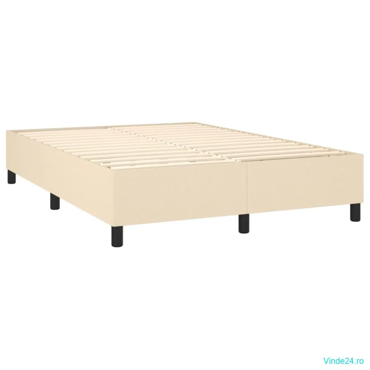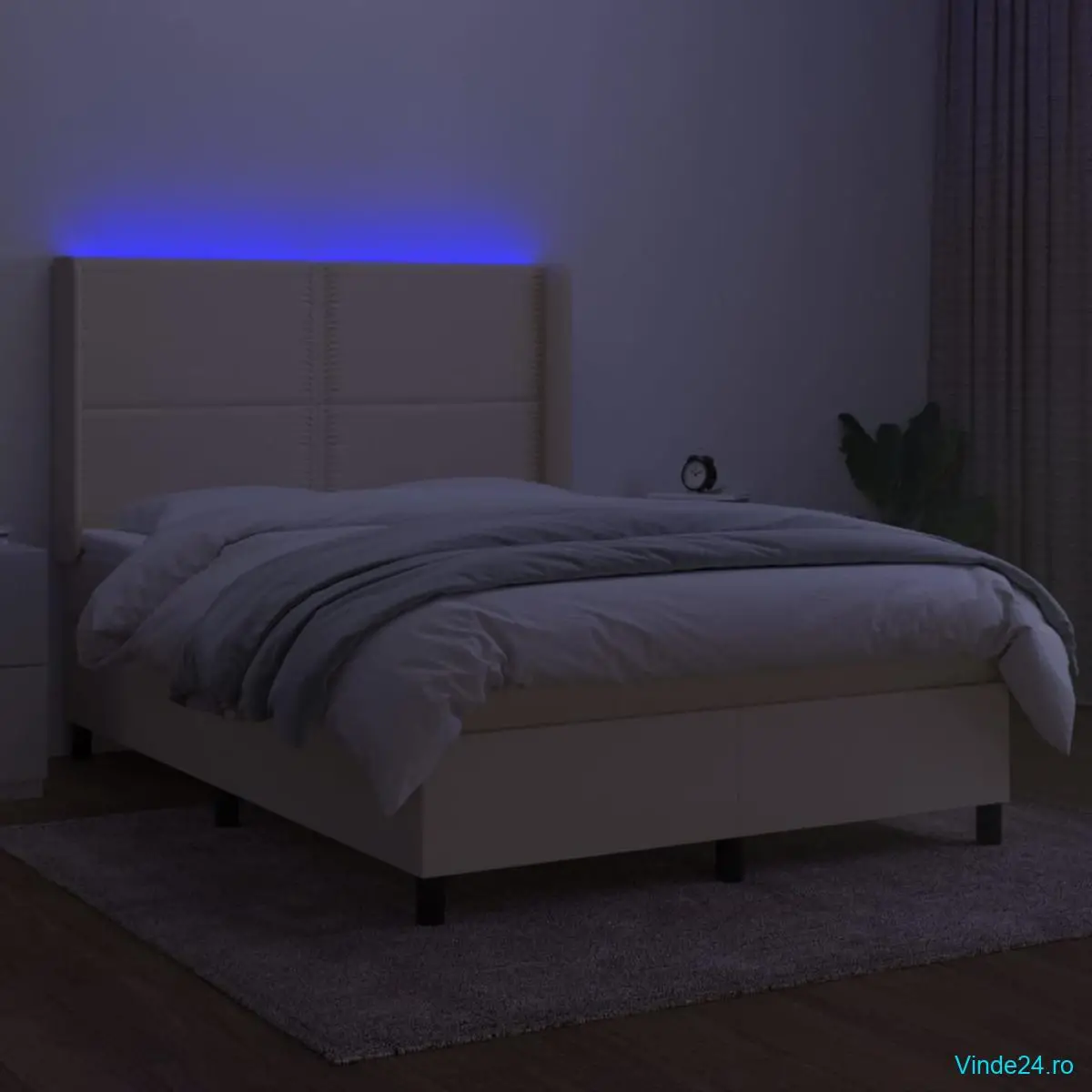 Pat cu arcuri, saltea și LED, crem, 140x200 cm, textil