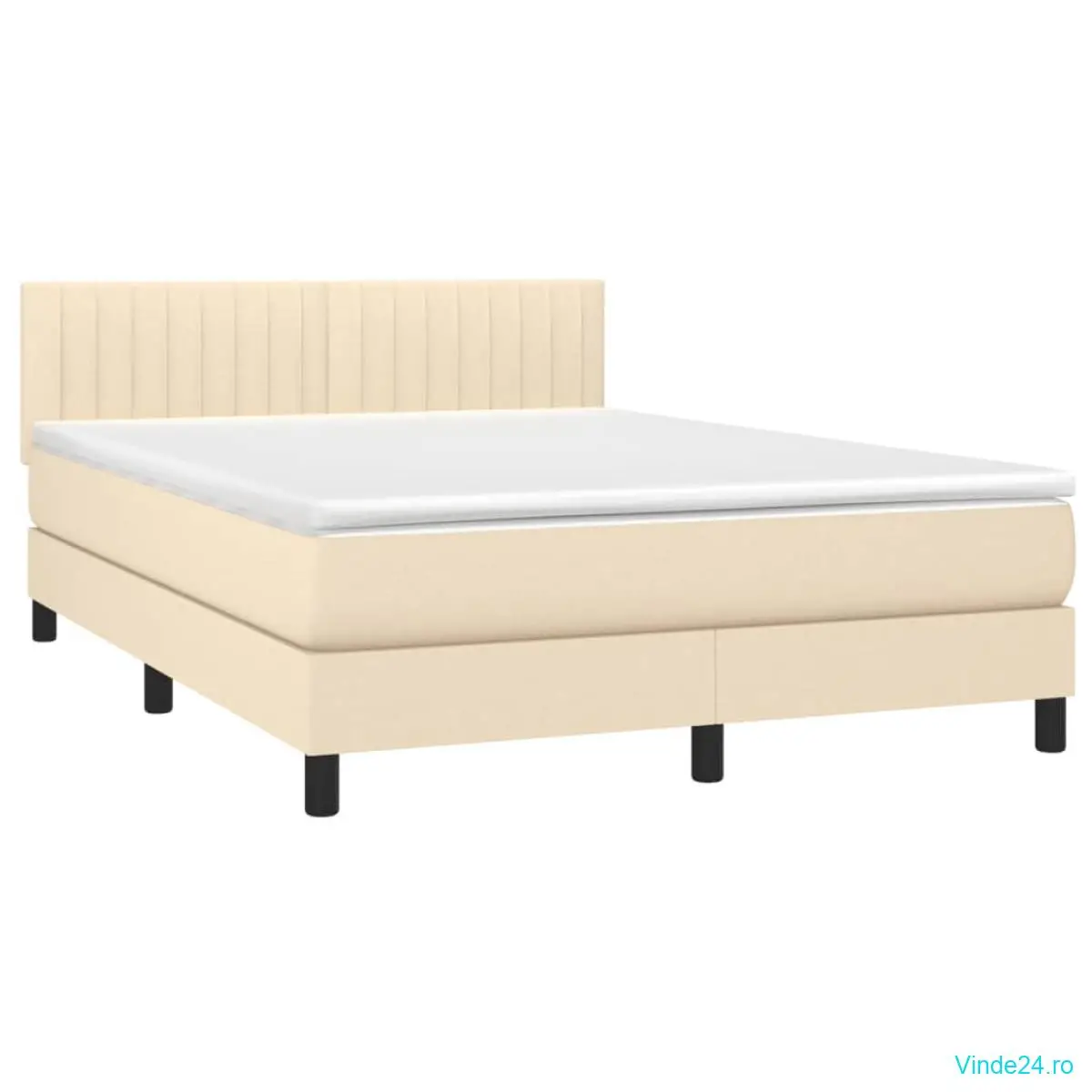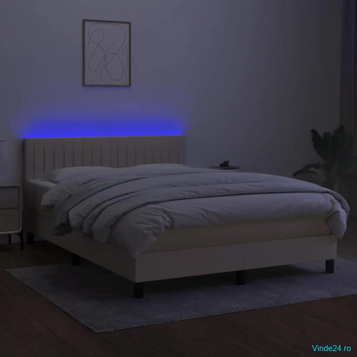 Pat cu arcuri, saltea și LED, crem, 140x200 cm, textil