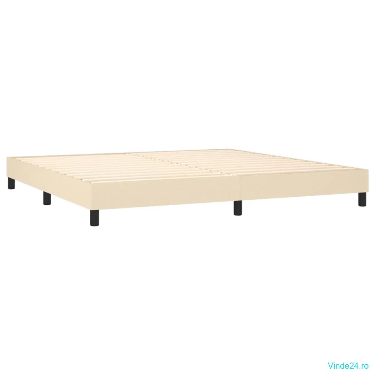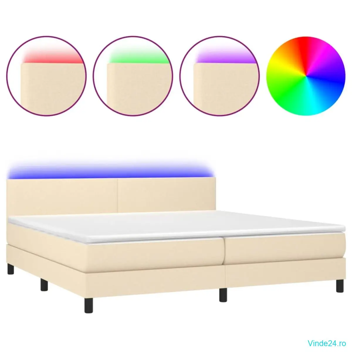 Pat cu arcuri, saltea și LED, crem, 200x200 cm, textil
