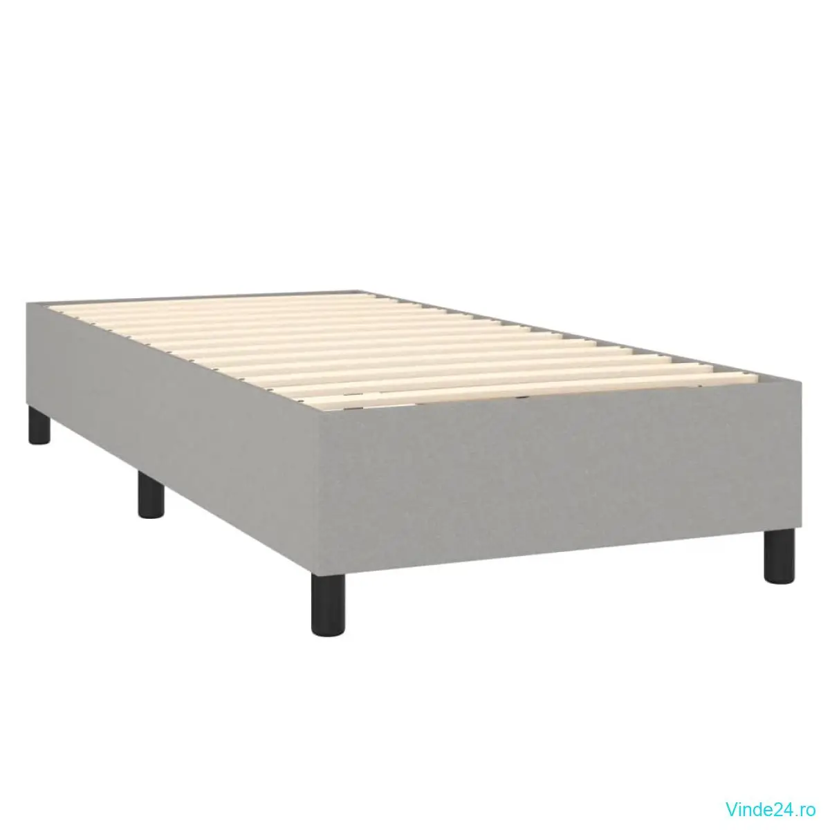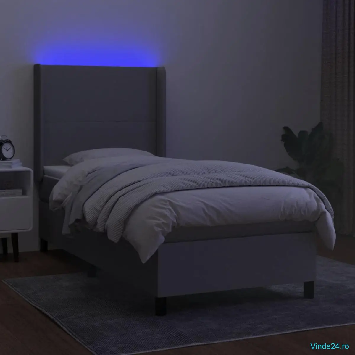 Pat cu arcuri, saltea și LED, gri deschis, 100x200 cm, textil