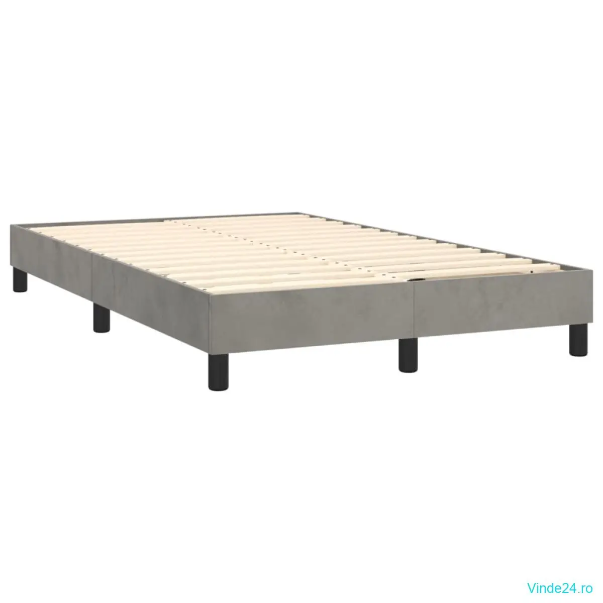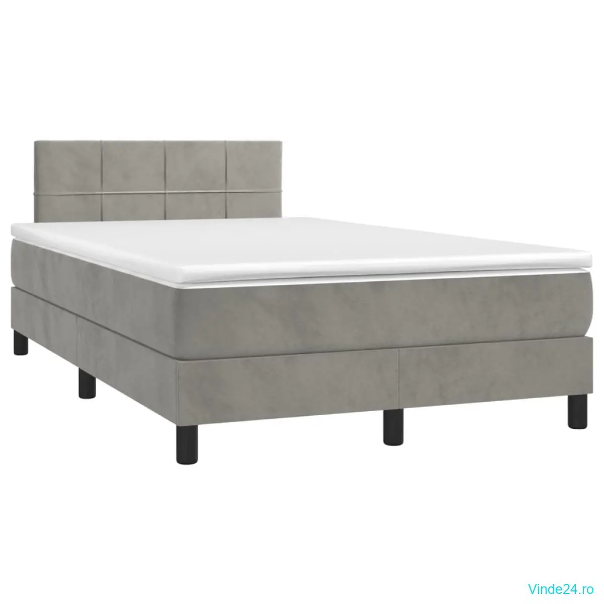 Pat cu arcuri, saltea și LED, gri deschis, 120x200 cm, catifea
