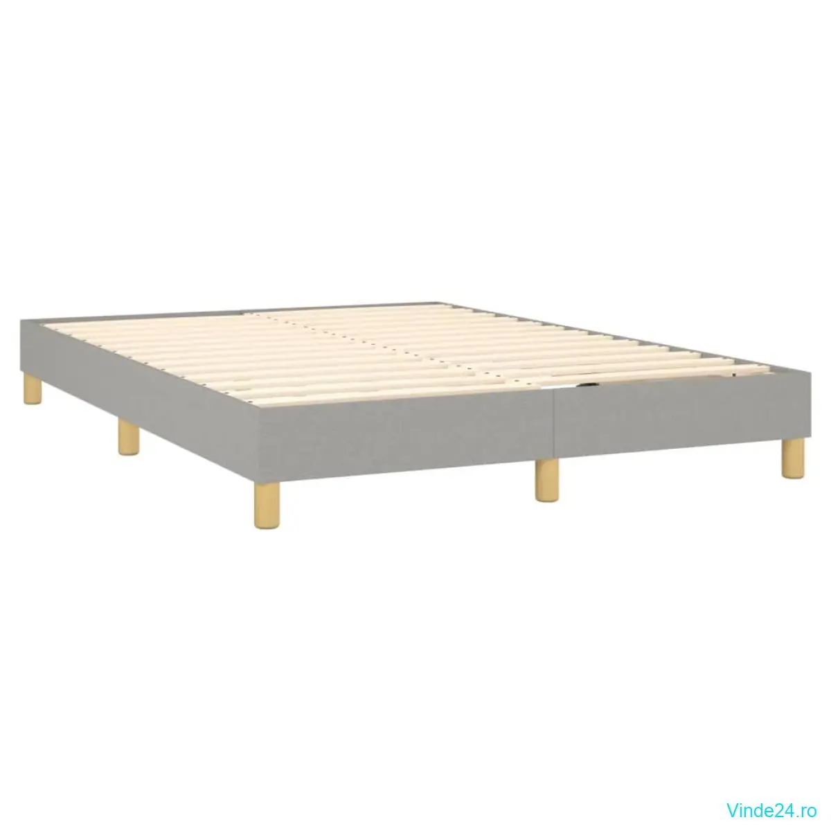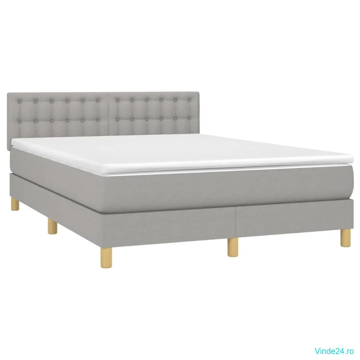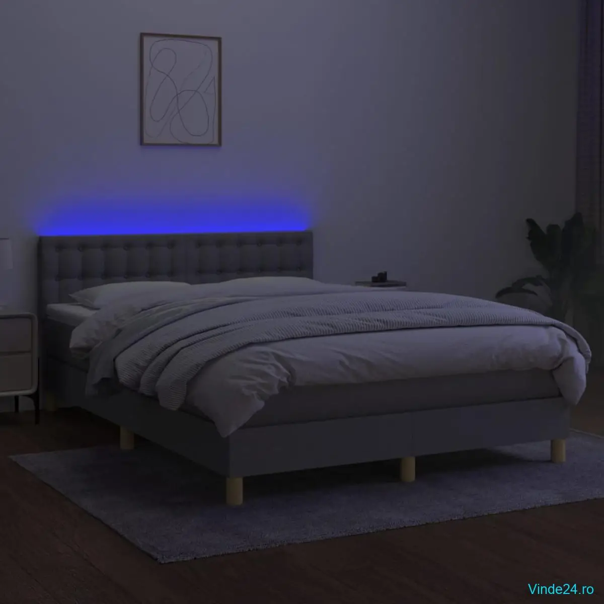 Pat cu arcuri, saltea și LED, gri deschis, 140x190 cm, textil