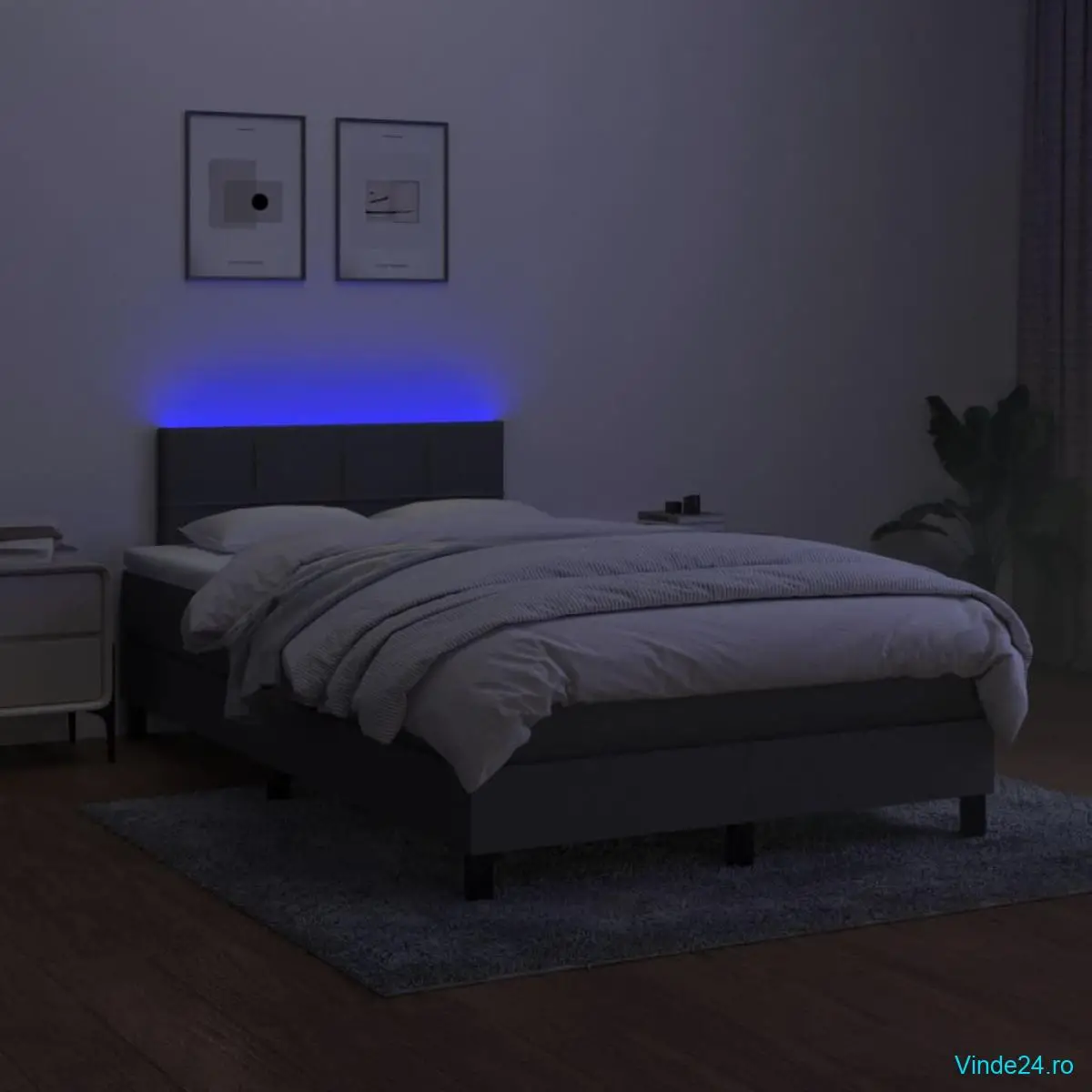 Folosiți acest pat cu arcuri, cu saltea și LED-uri, pentru a vă bucura de un somn odihnitor! Va fi punctul de atracție al dormitorului dvs.