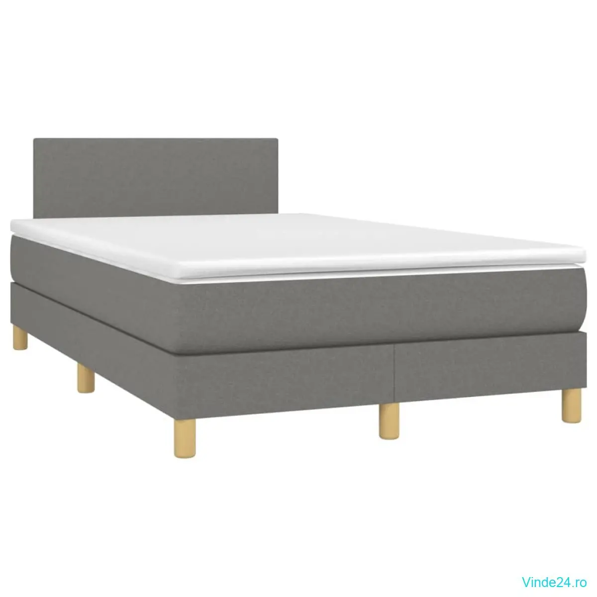 Pat cu arcuri, saltea și LED, gri închis, 120x200 cm, textil