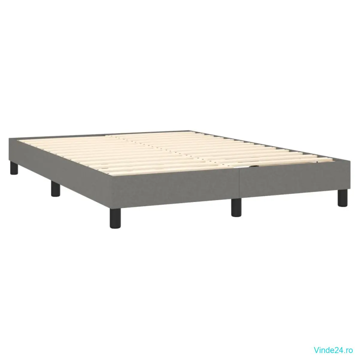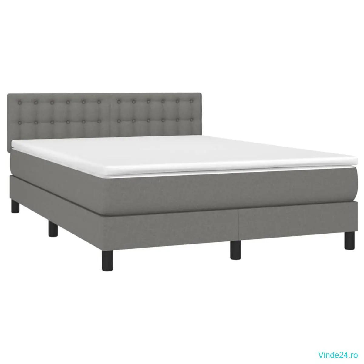 Pat cu arcuri, saltea și LED, gri închis, 140x190 cm, textil