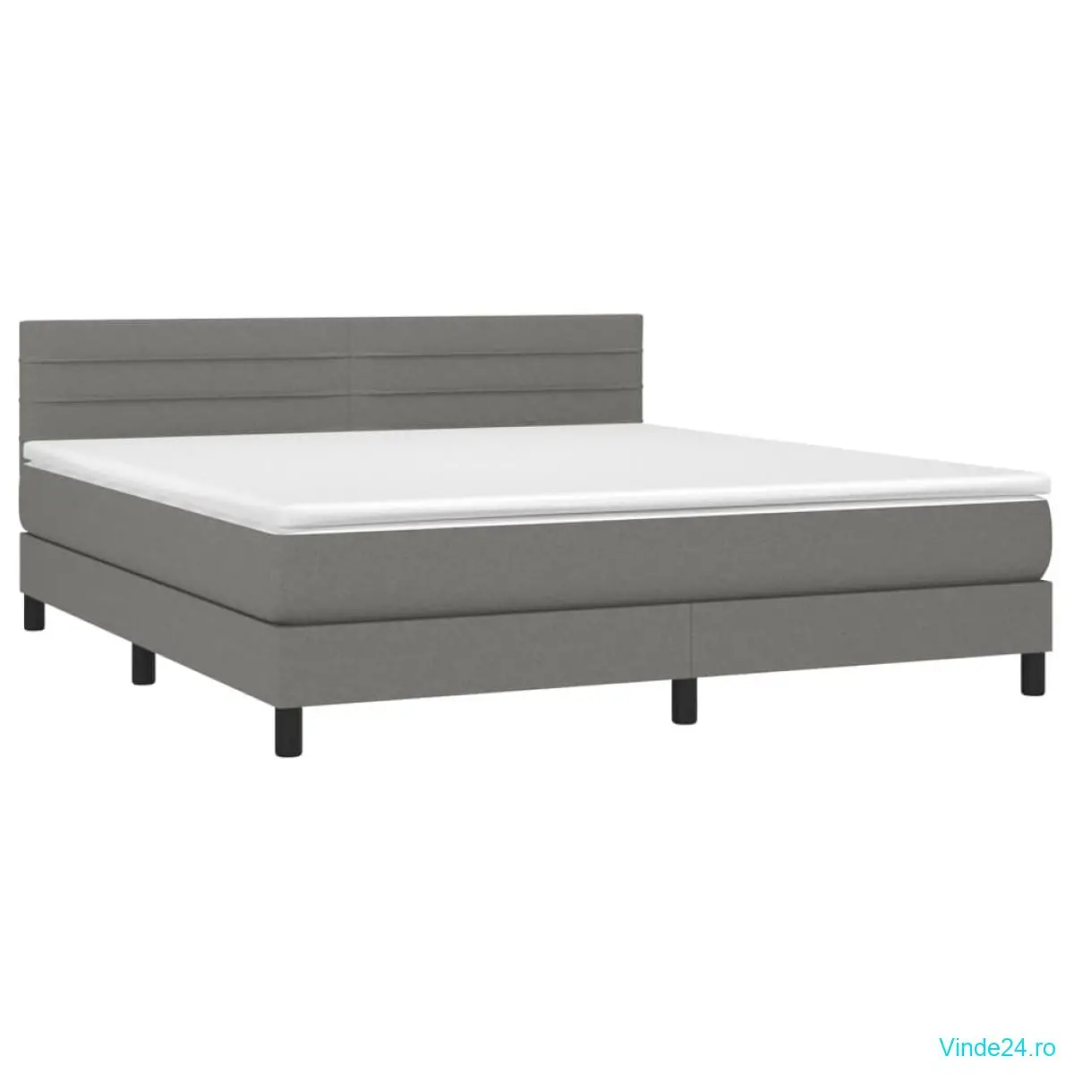 Pat cu arcuri, saltea și LED, gri închis, 160x200 cm, textil