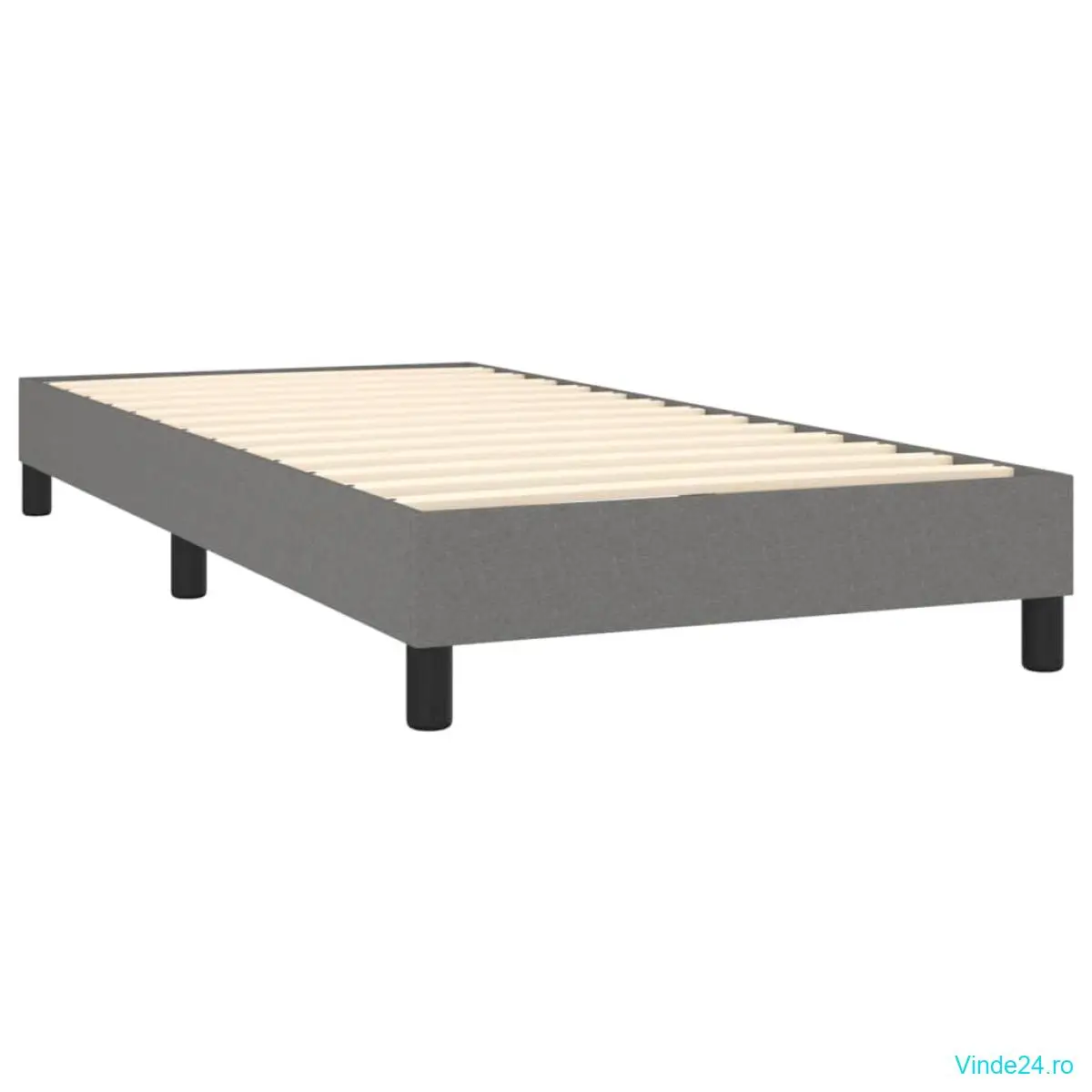 Pat cu arcuri, saltea și LED, gri închis, 90x200 cm, textil