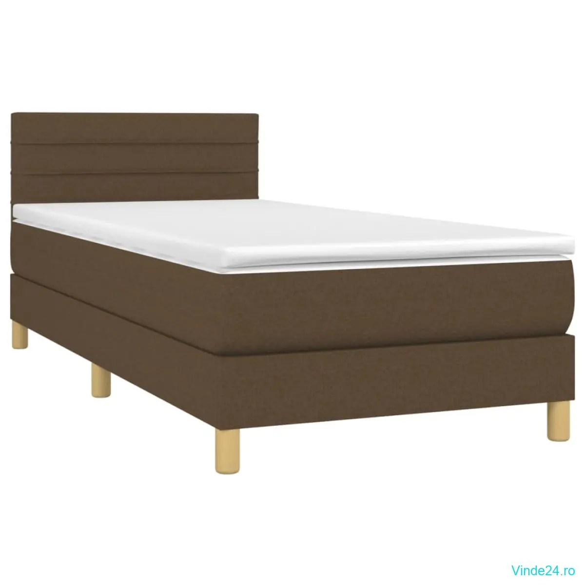 Pat cu arcuri, saltea și LED, maro închis, 100x200 cm, textil