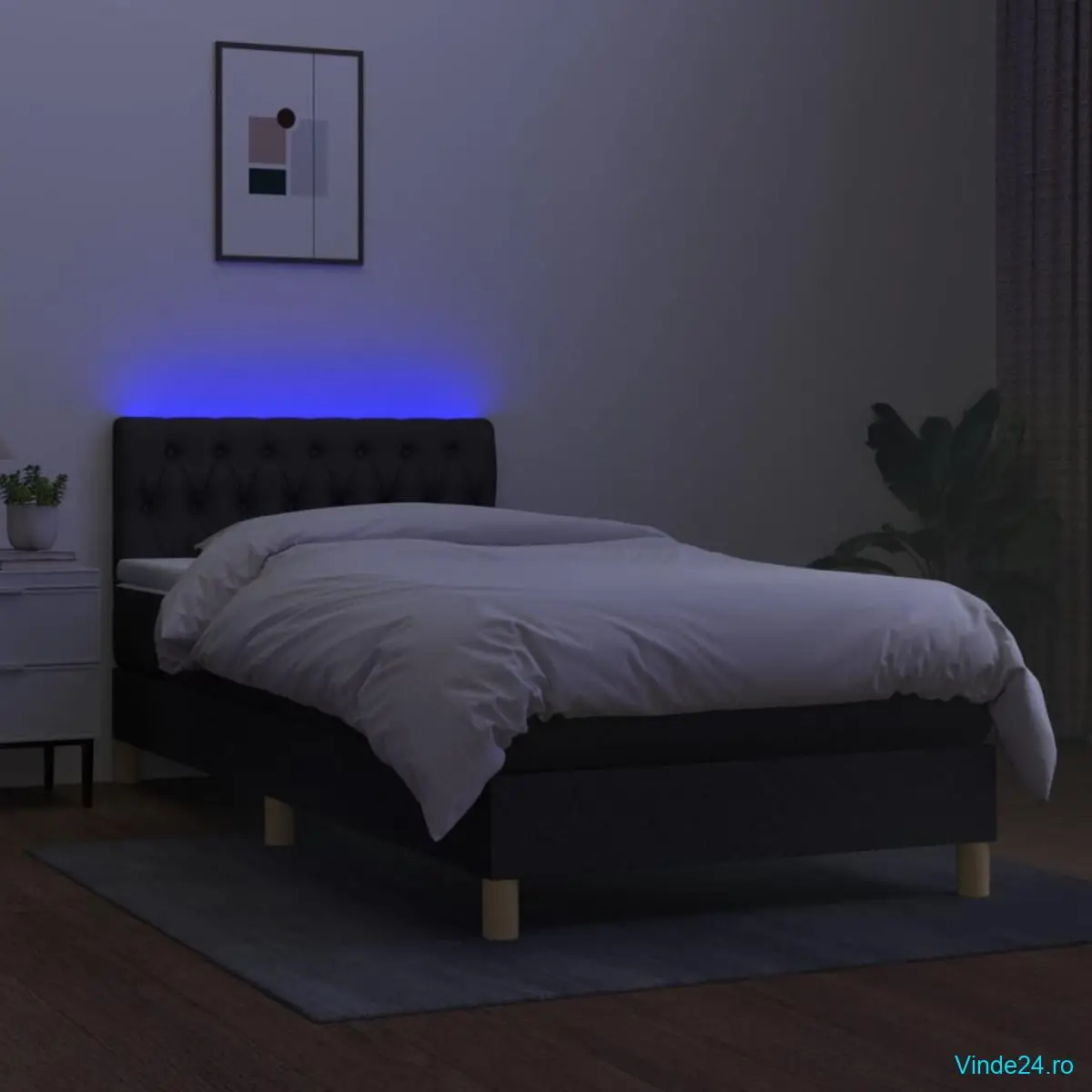 Pat cu arcuri, saltea și LED, negru, 100x200 cm, textil
