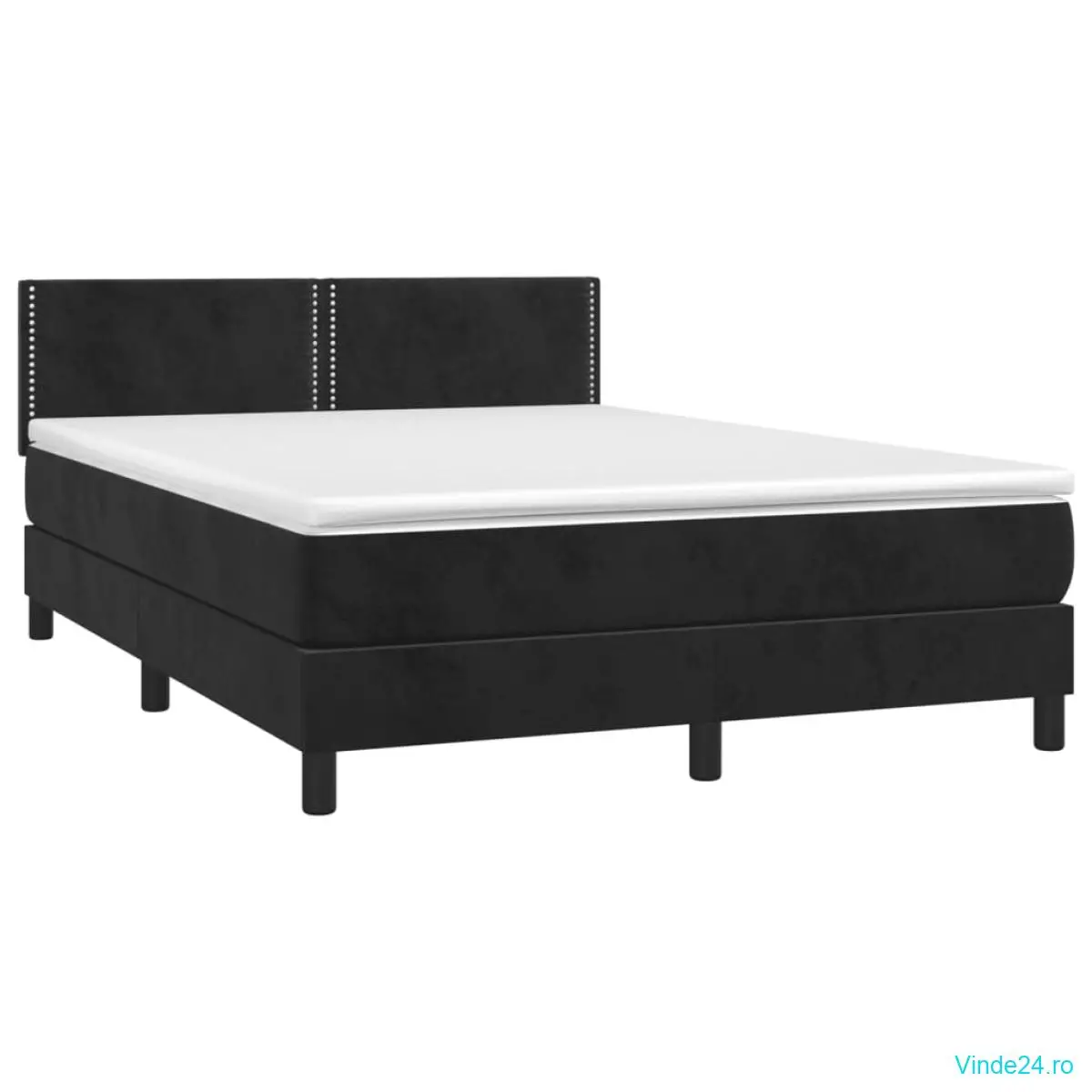 Pat cu arcuri, saltea și LED, negru, 140x200 cm, catifea
