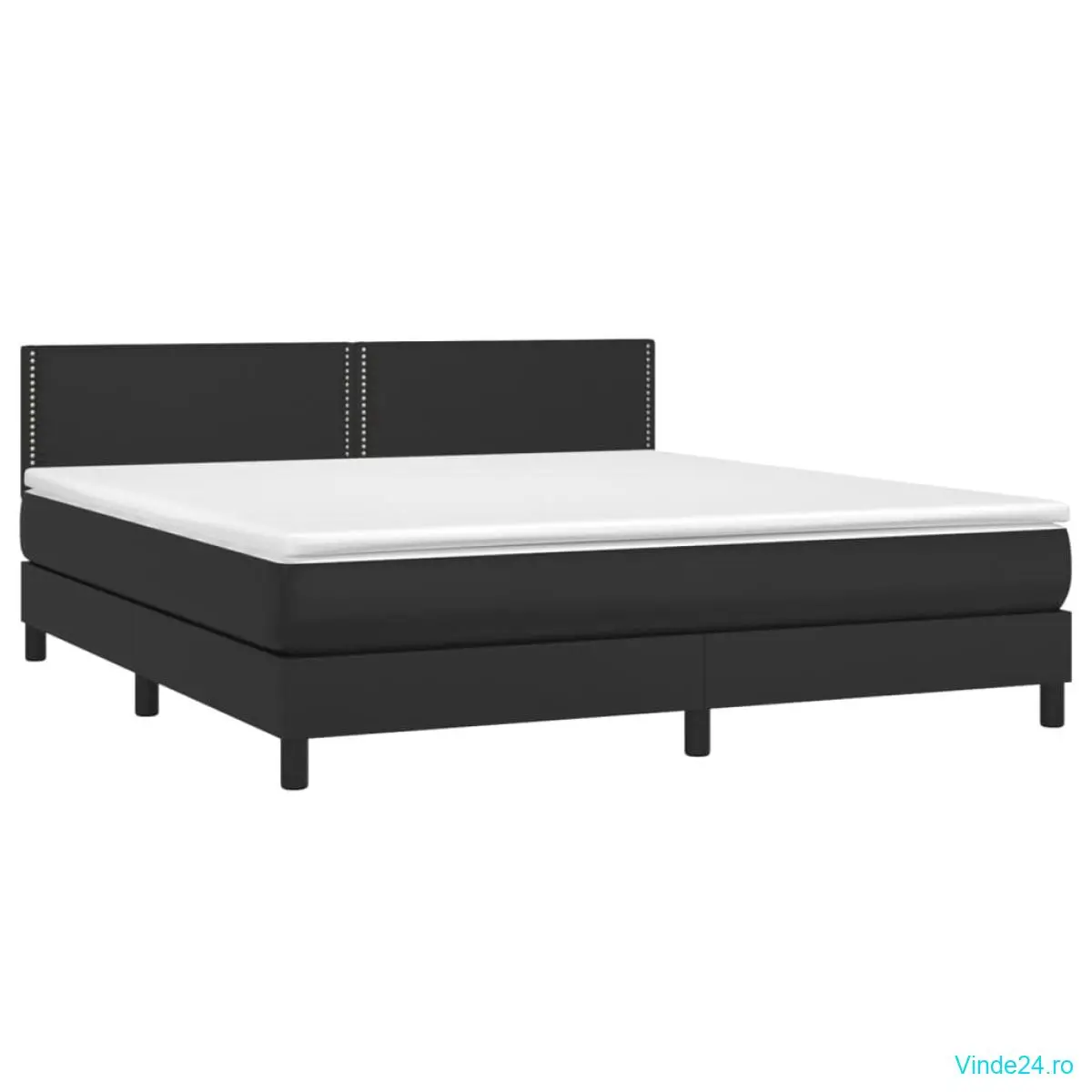 Pat cu arcuri, saltea și LED, negru, 160x200cm, piele ecologică