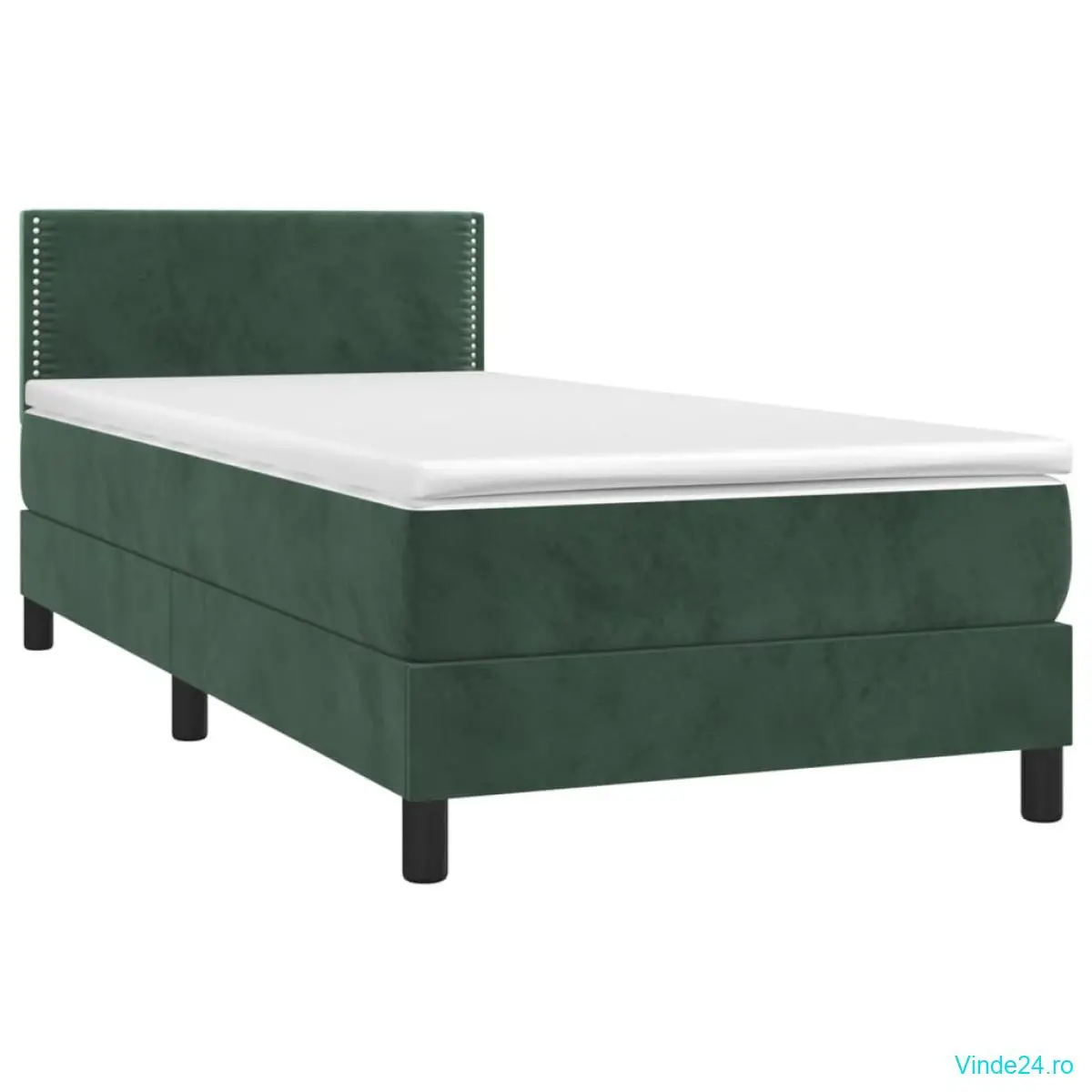 Pat cu arcuri, saltea și LED, verde, 90x200 cm, catifea
