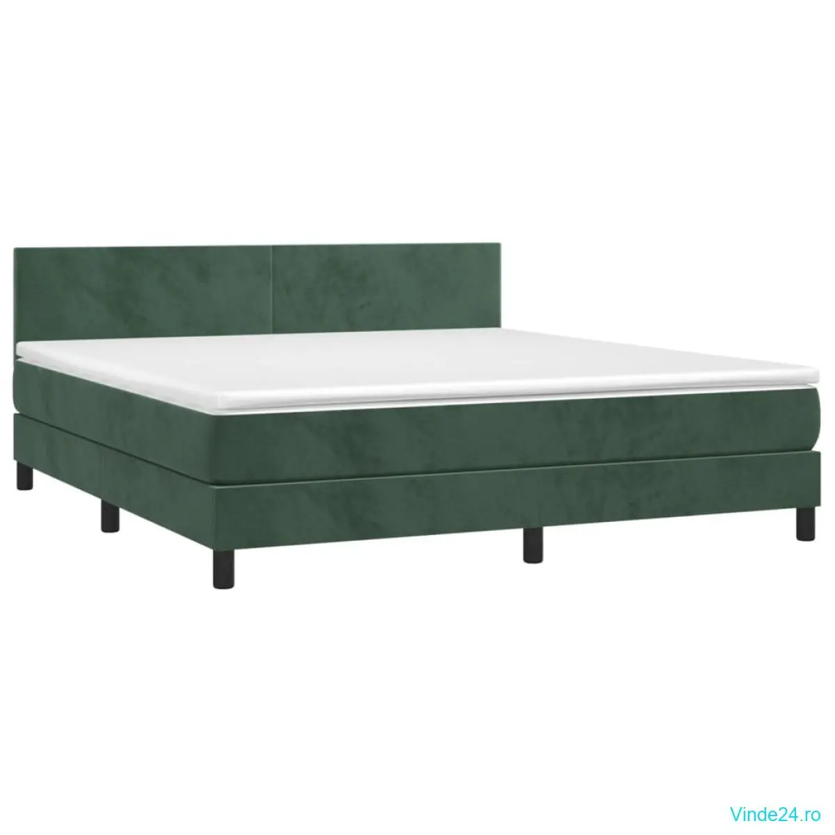 Pat cu arcuri, saltea și LED, verde închis, 160x200 cm, catifea