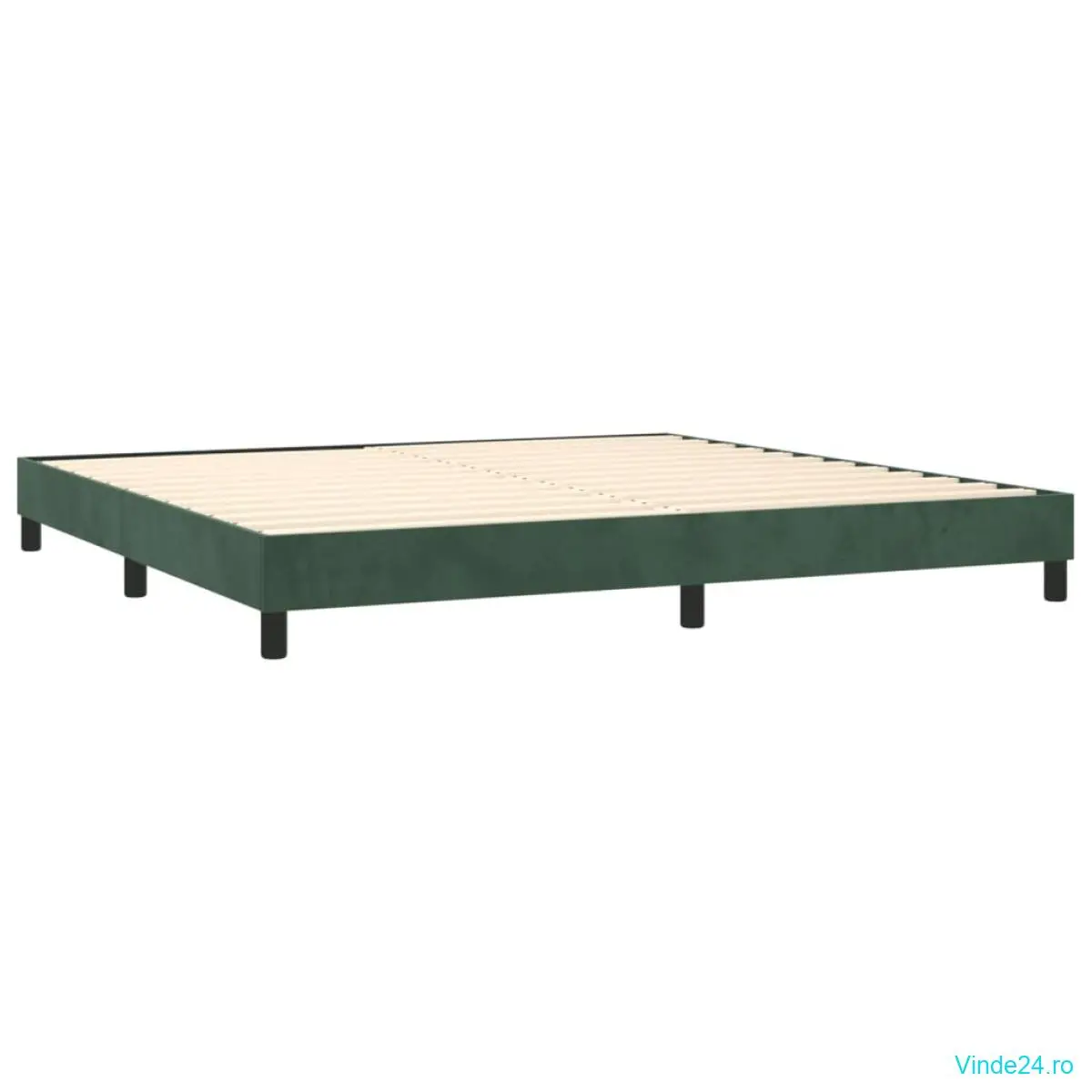 Pat cu arcuri, saltea și LED, verde închis, 200x200 cm, catifea