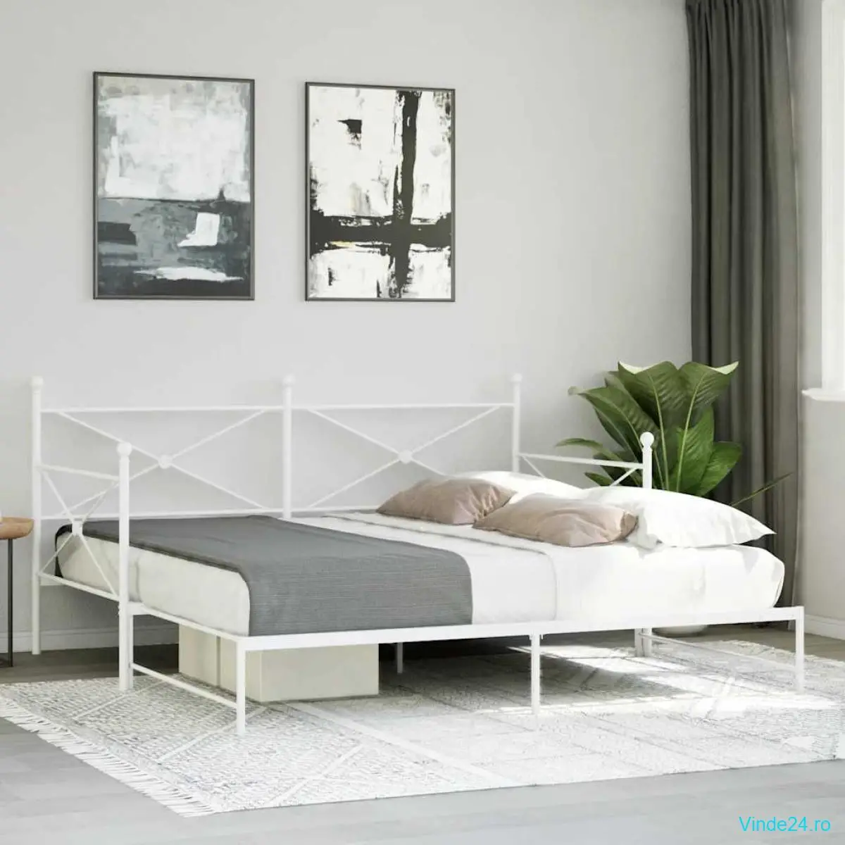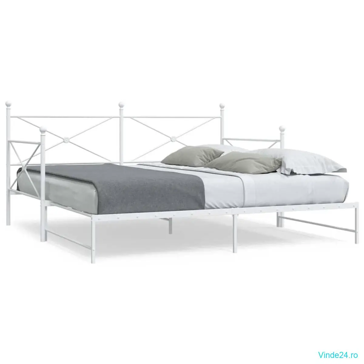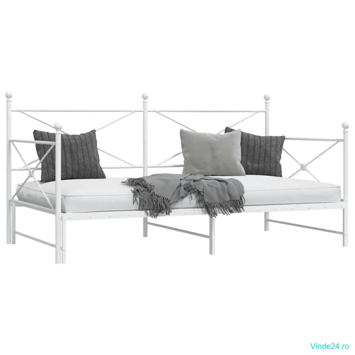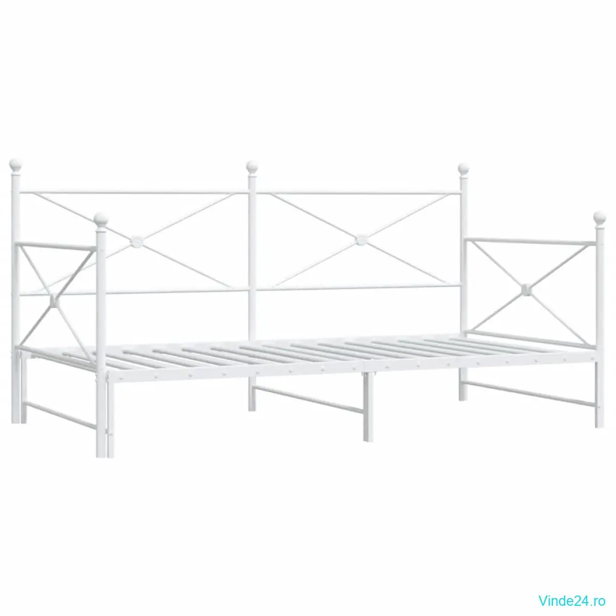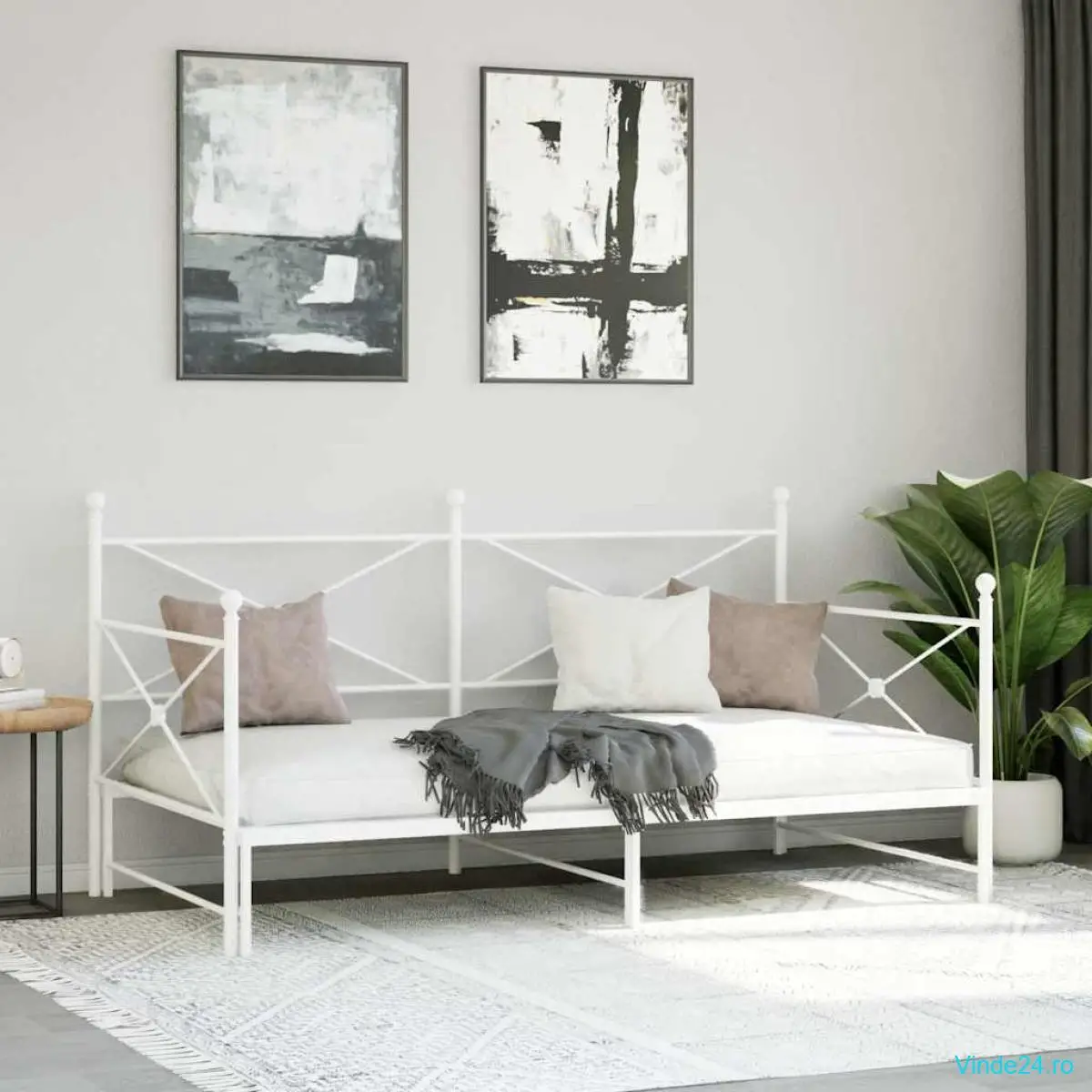 Pat de zi cu șuviț fără saltea Alb 100x200 cm Oțel