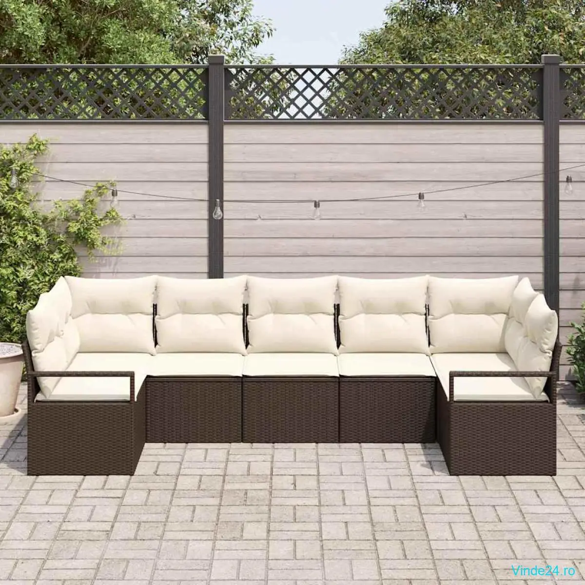 Setul modular de canapea de exterior e tot despre confort și stil. E o alegere grozavă pentru orice zonă exterioară. Cu culorile sale maro și crem, ține pasul cu frumosul și utilitatea, fiind perfect pentru grădină, patio sau balcon.