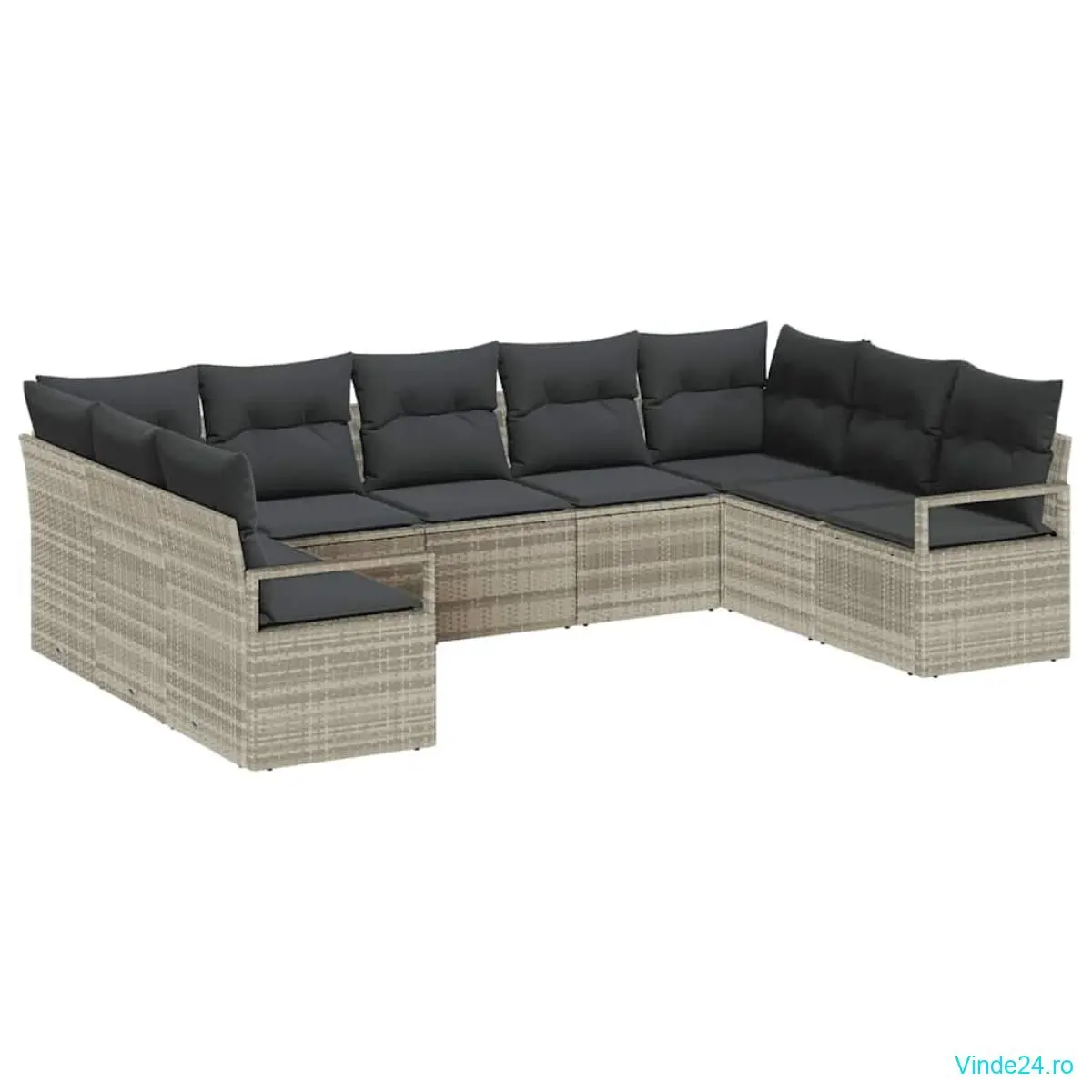Set de sofa pentru grădină 9 piese cu perne Gri deschis Poliratan