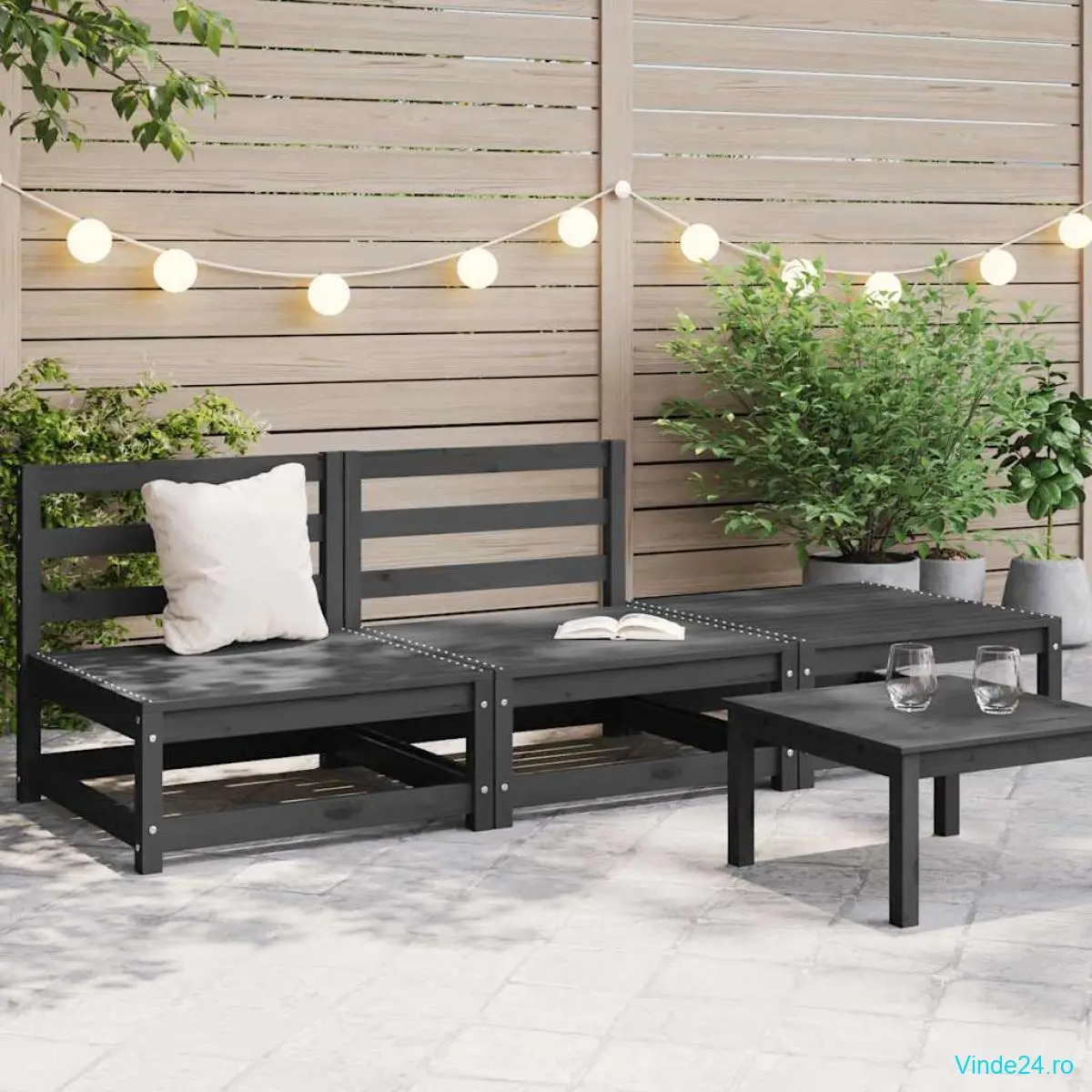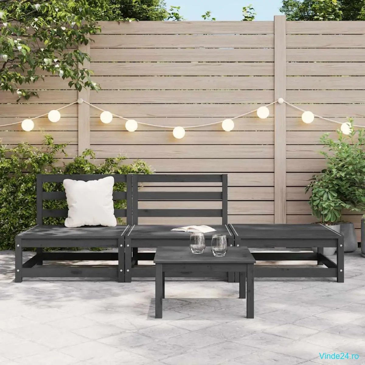 Setul de mobilier de relaxare pentru grădină este realizat din lemn masiv de pin, ceea ce îl face robust și stabil. Pernele adaugă un confort suplimentar. Îl puteți combina cu alte segmente modulare pentru a vă crea propriile configurații de seturi de grădină personale pentru relaxare!