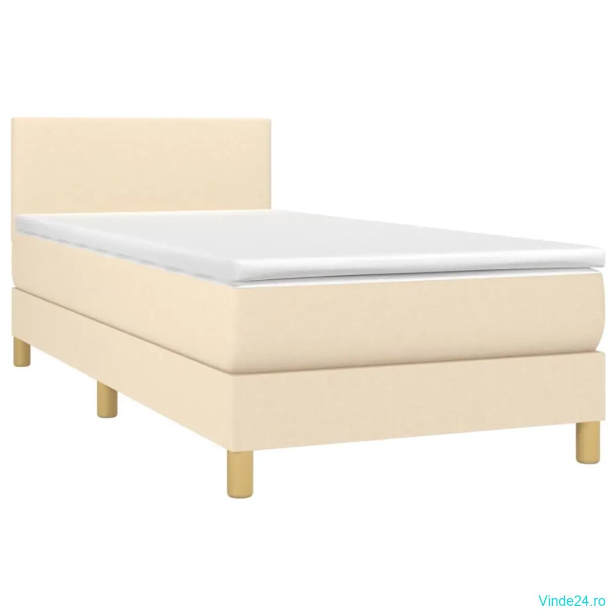 vidaXL Pat box spring cu saltea, crem, 100x200 cm, textil
