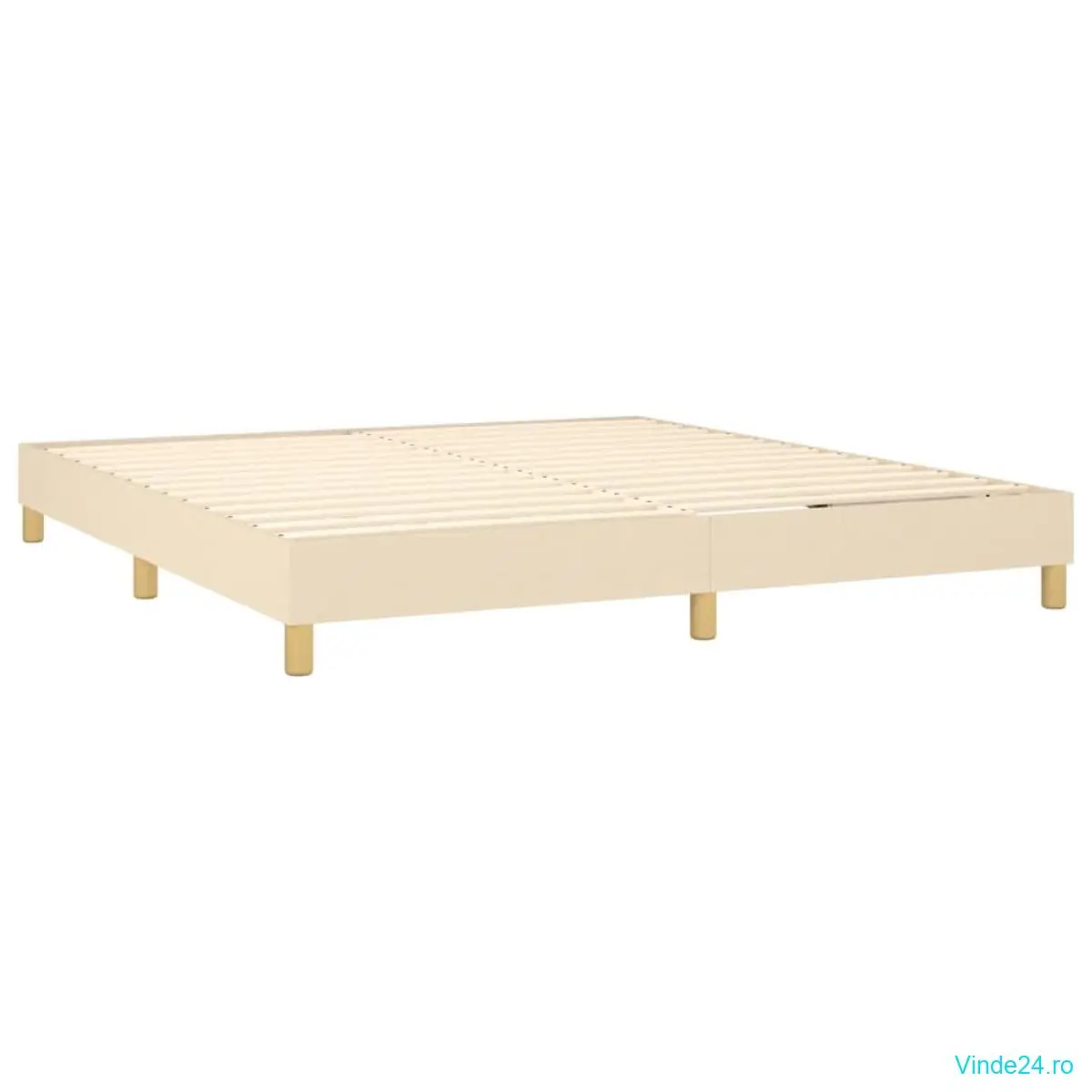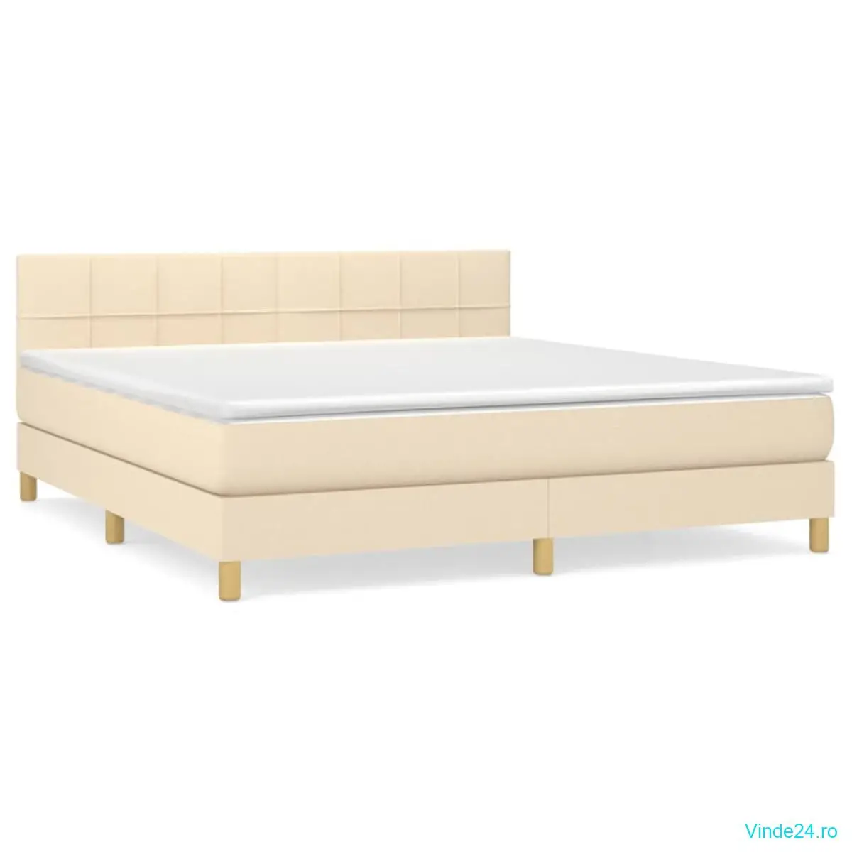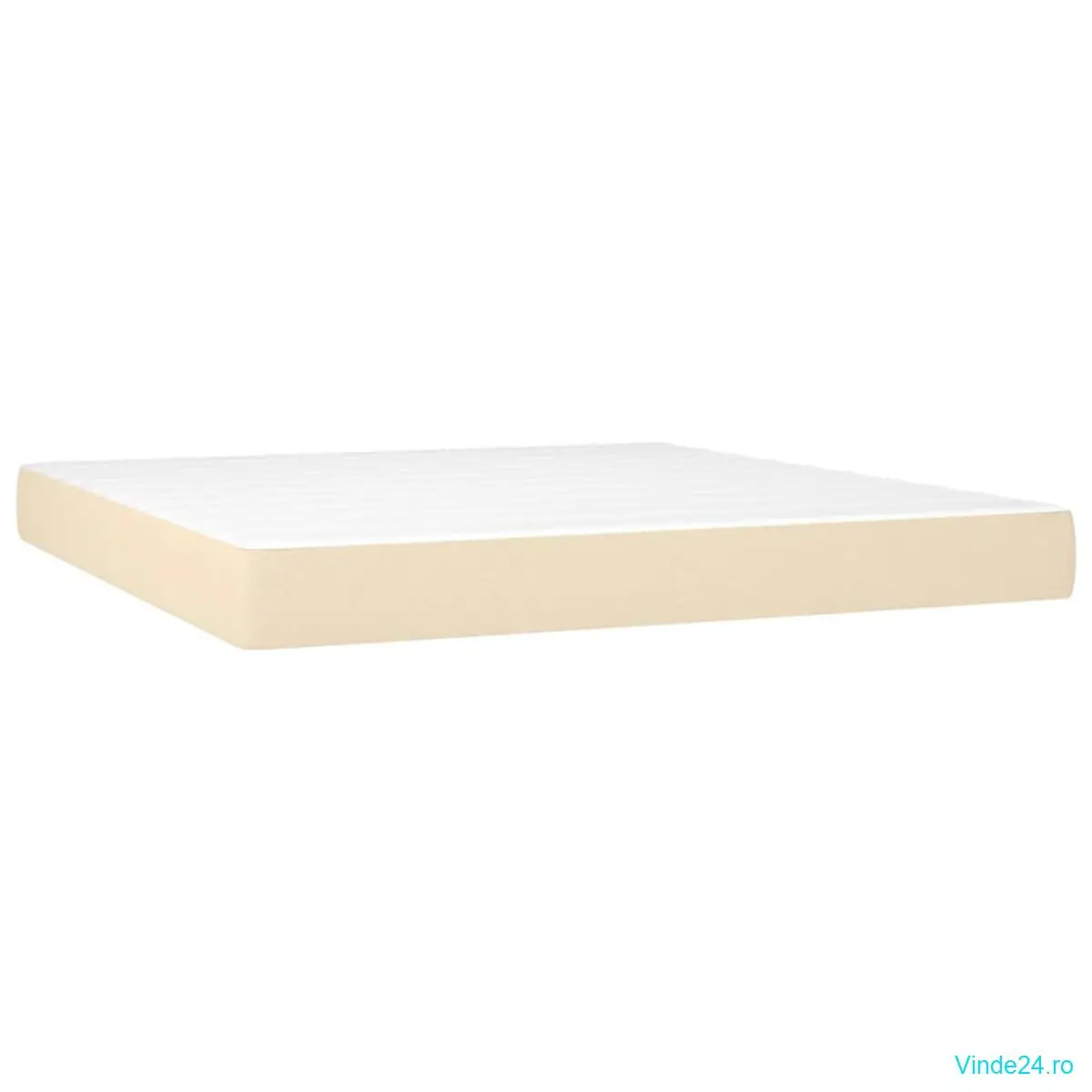 vidaXL Pat box spring cu saltea, crem, 160x200 cm, material textil