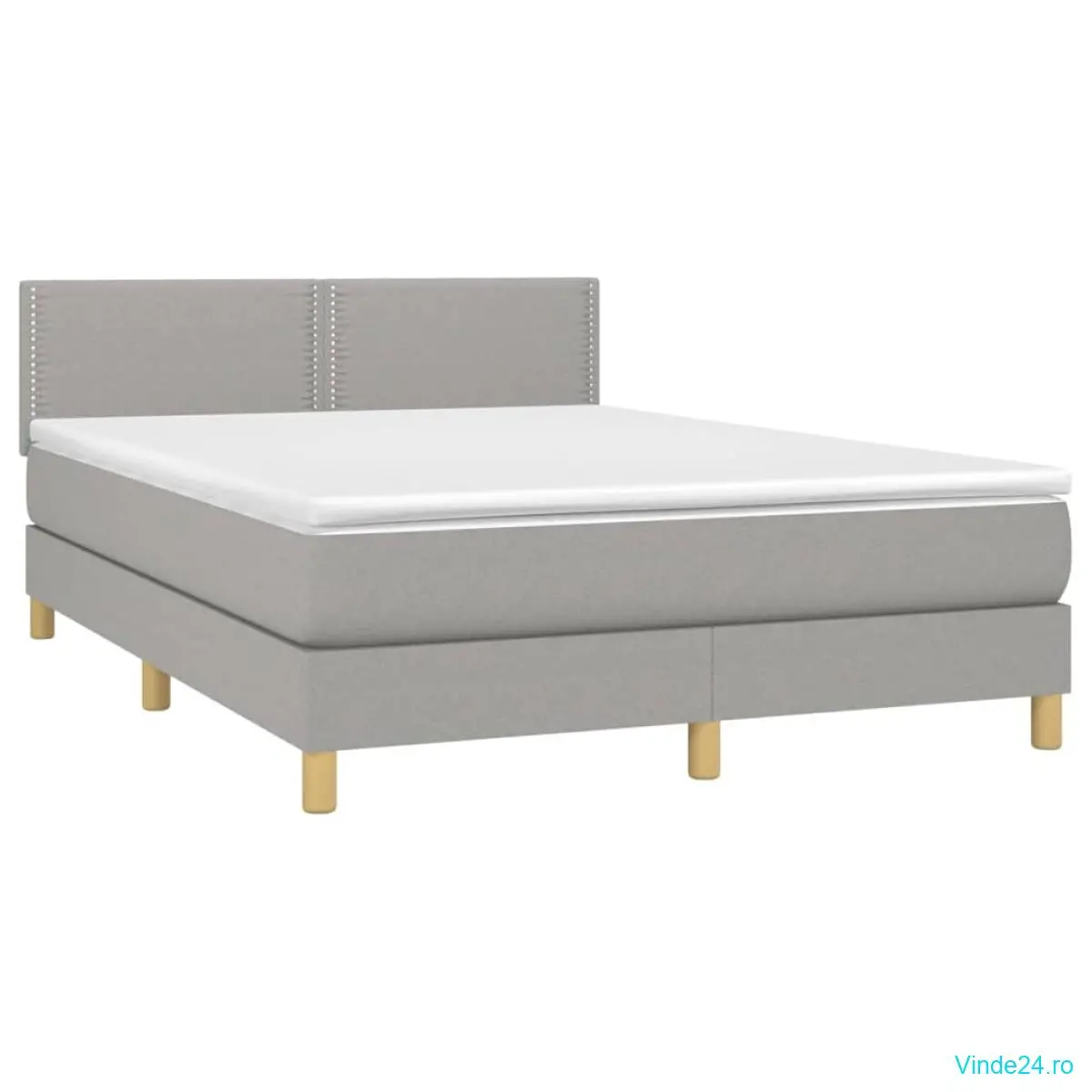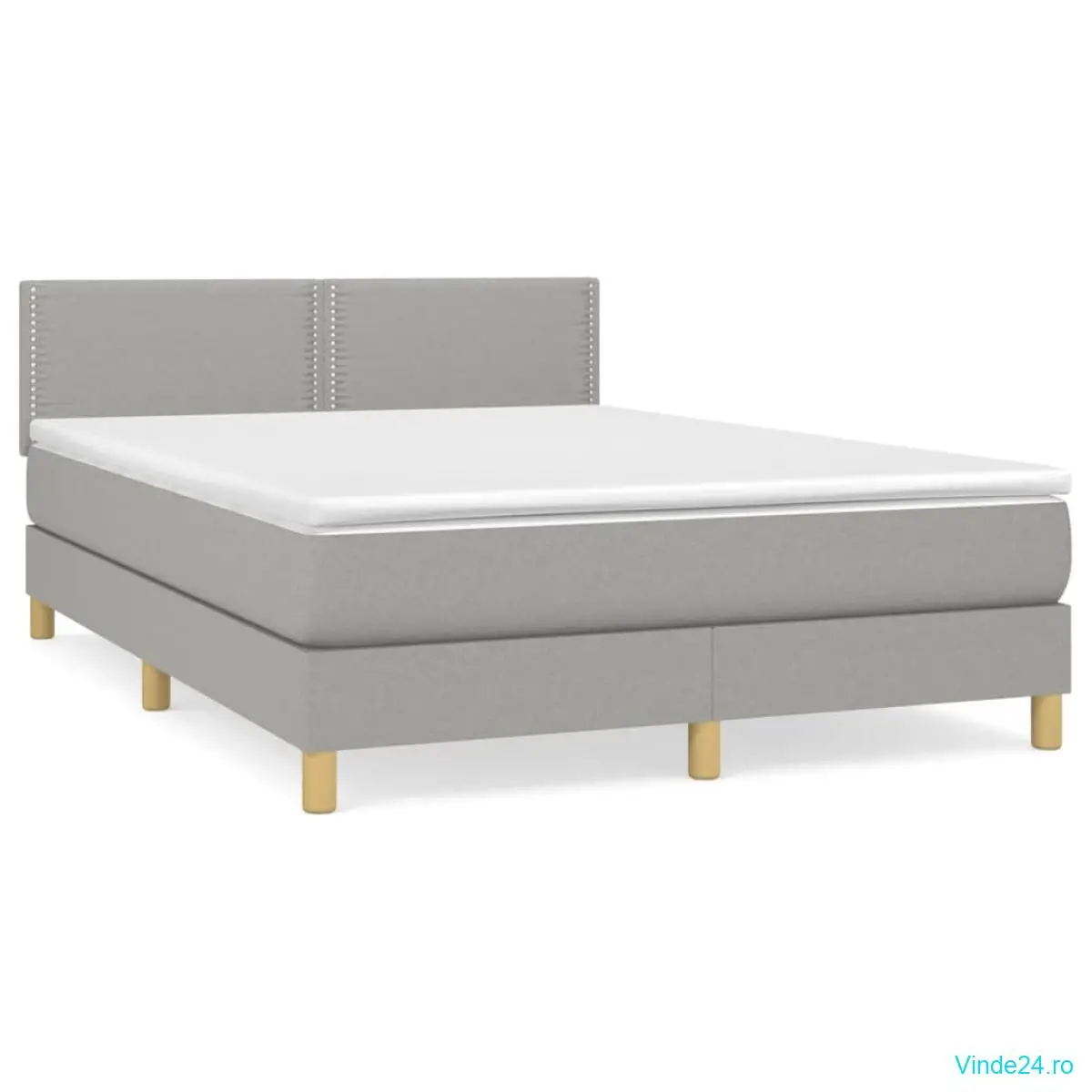 vidaXL Pat box spring cu saltea, gri deschis, 140x190 cm, textil