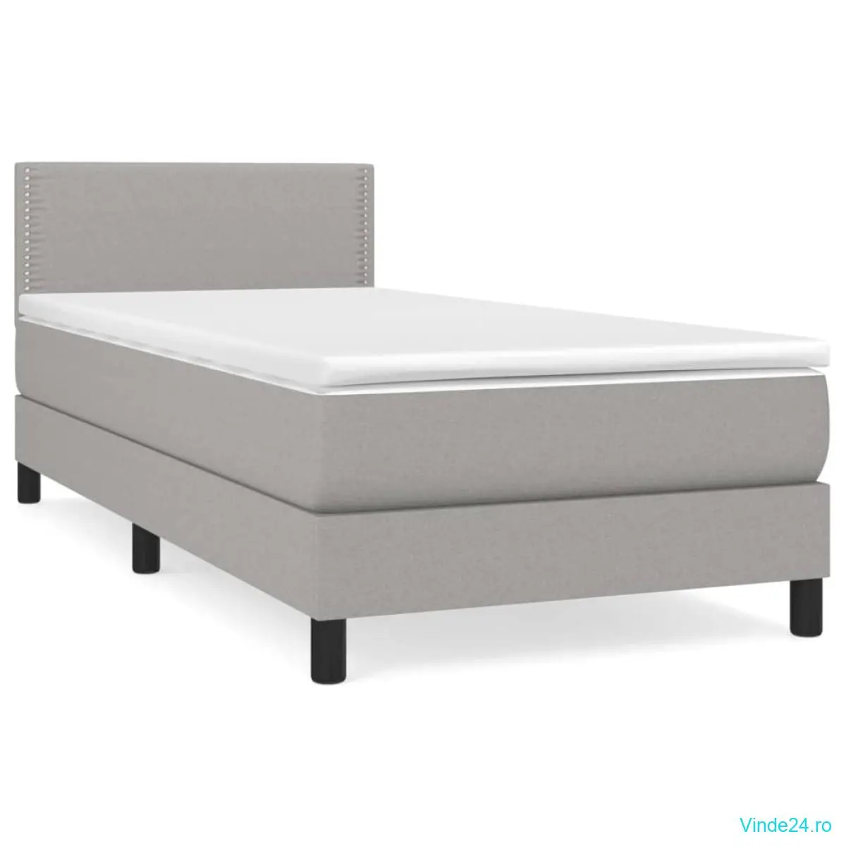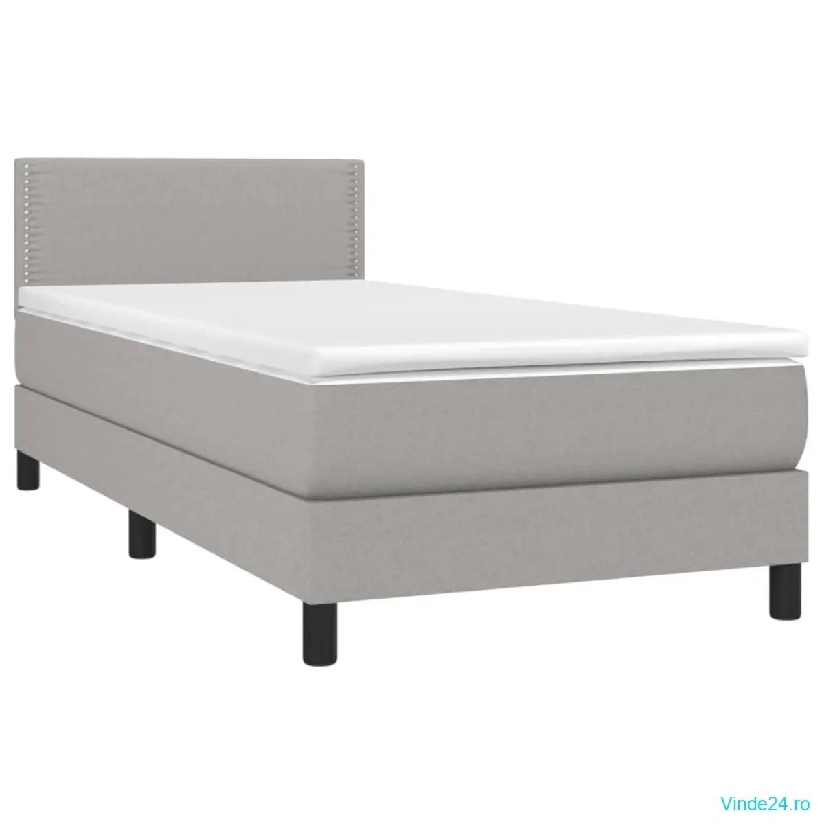 vidaXL Pat box spring cu saltea, gri deschis, 90x190 cm, textil