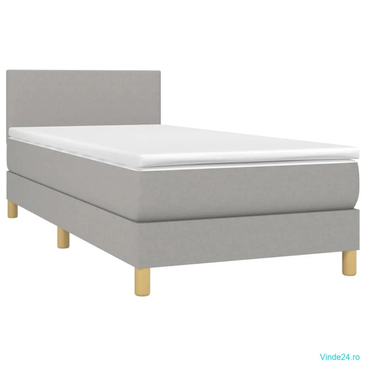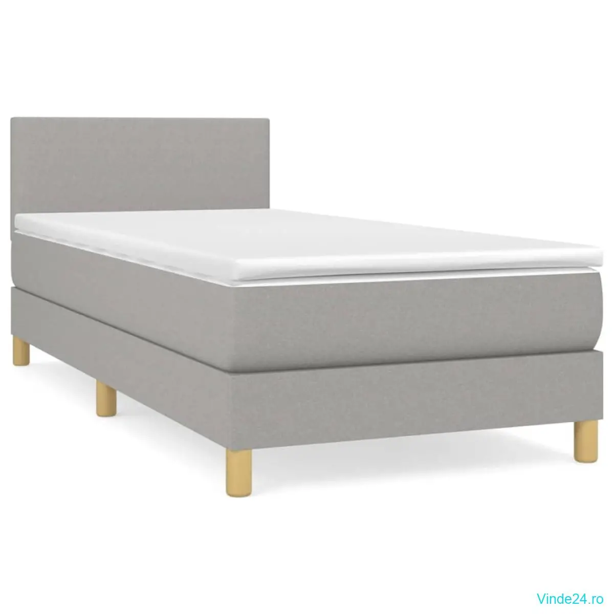 vidaXL Pat box spring cu saltea, gri deschis, 90x200 cm, textil