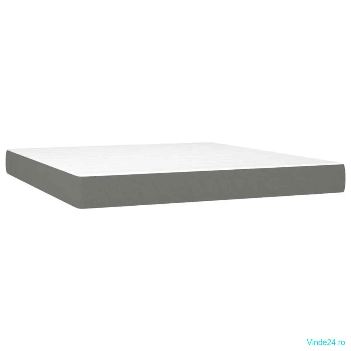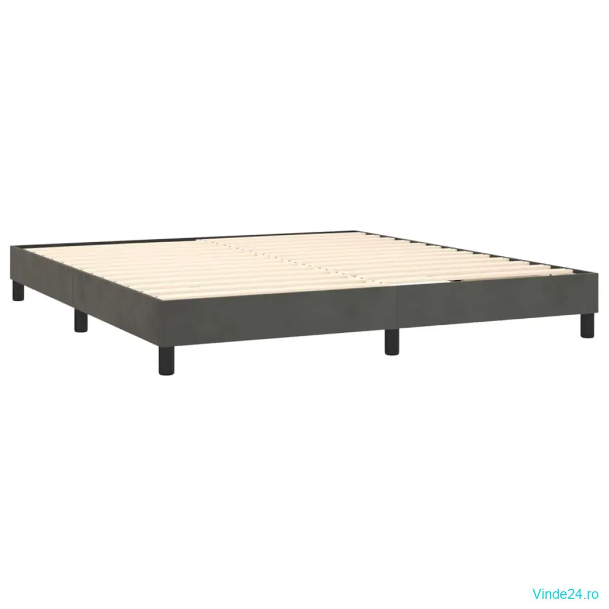 vidaXL Pat box spring cu saltea, gri închis, 160x200 cm, catifea