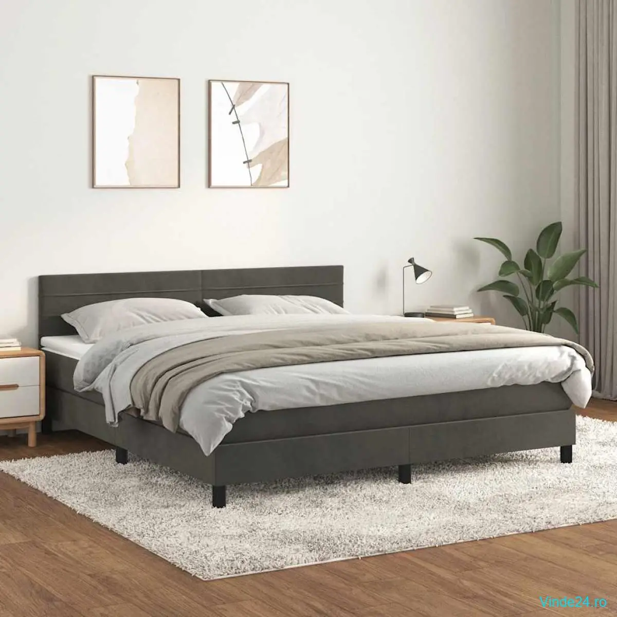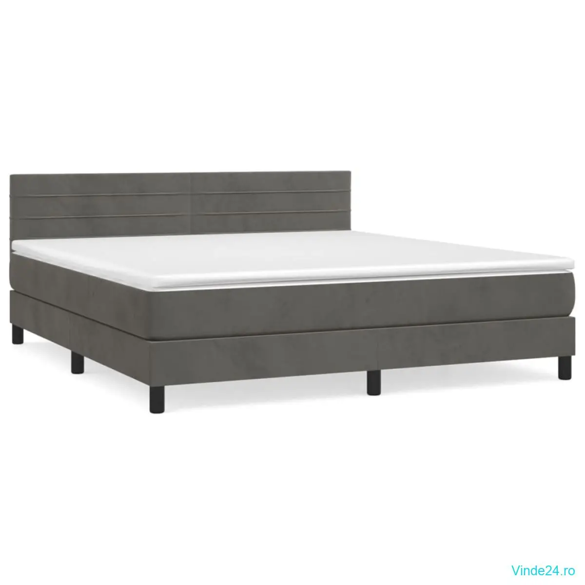 vidaXL Pat box spring cu saltea, gri închis, 180x200 cm, catifea