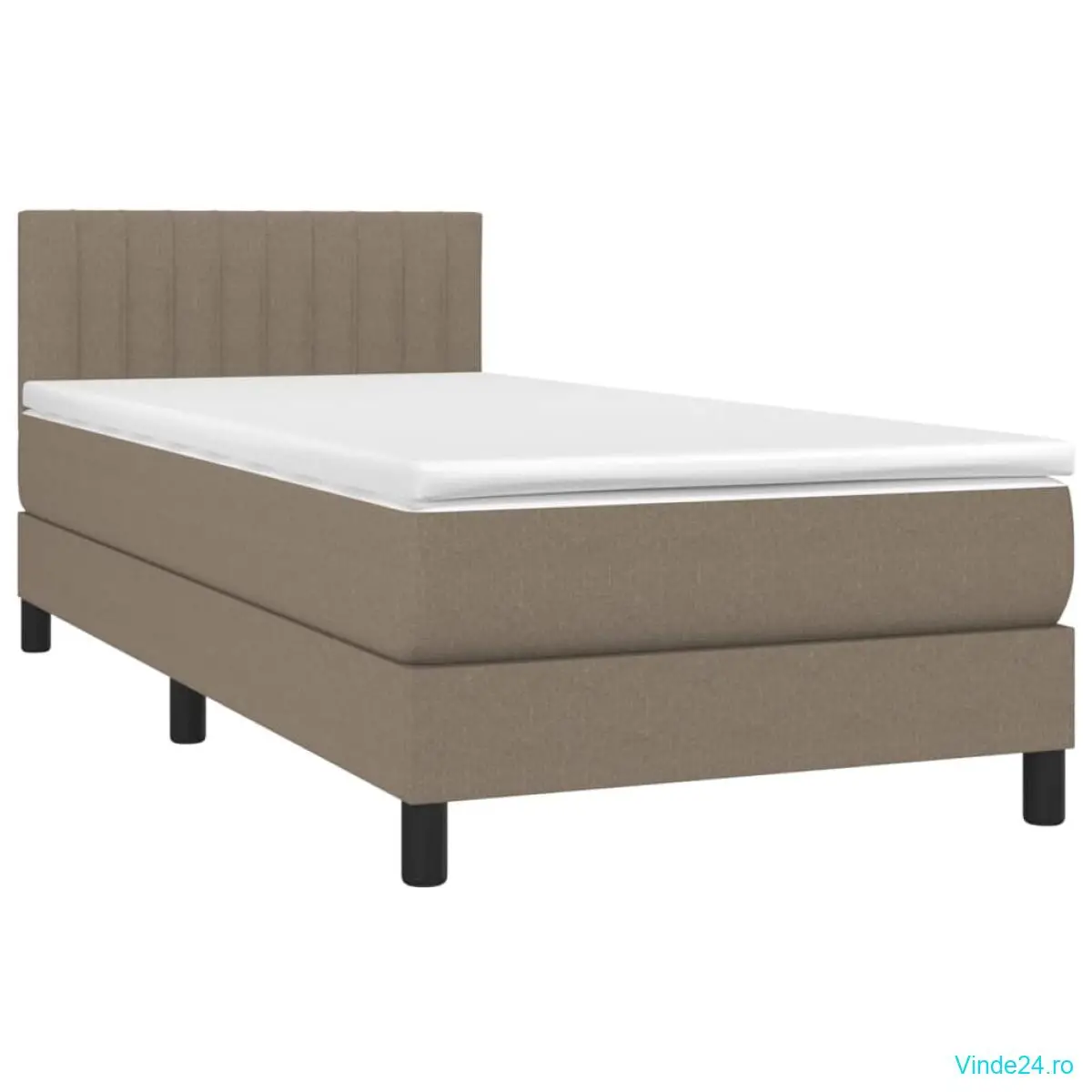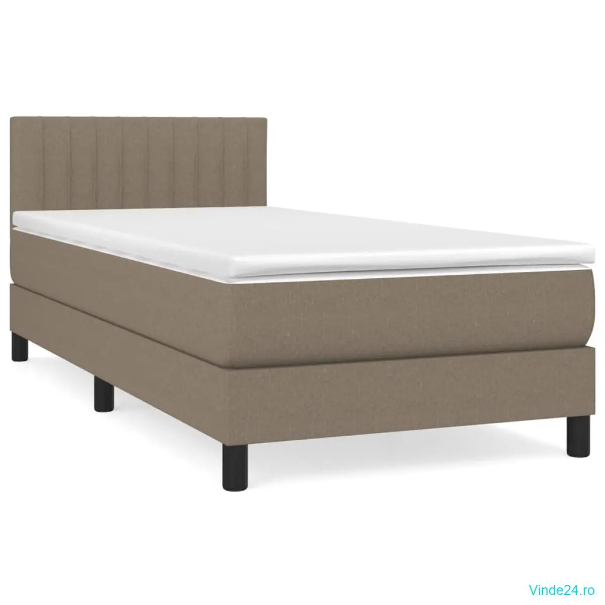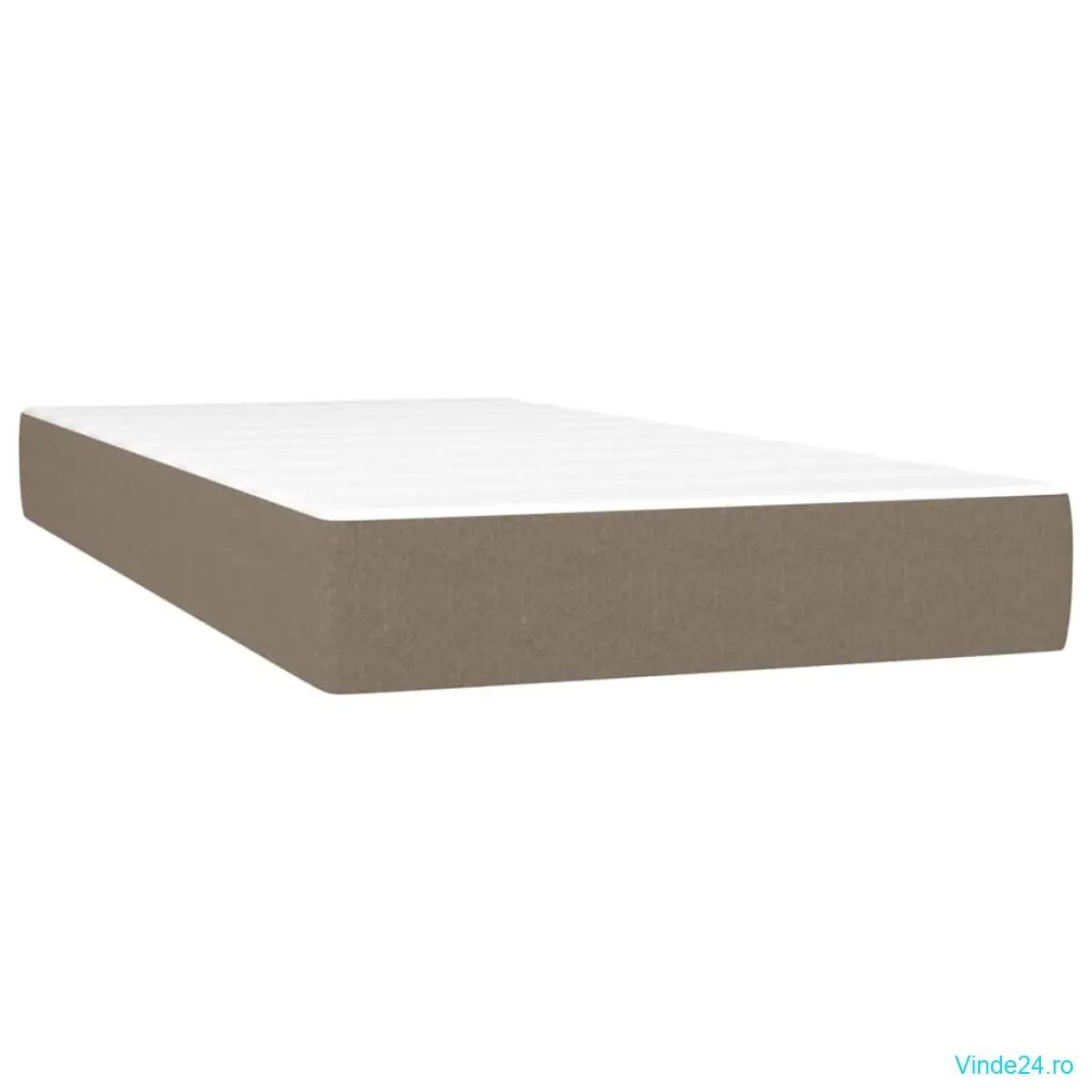 vidaXL Pat box spring cu saltea, gri taupe, 100x200 cm, textil