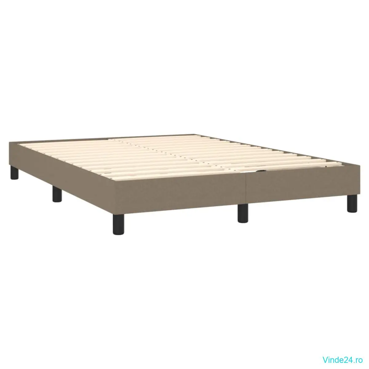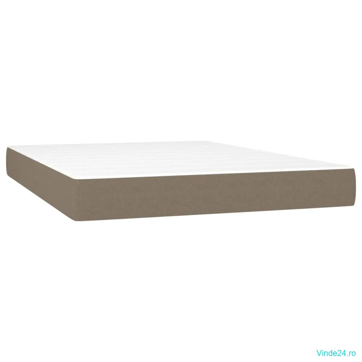 vidaXL Pat box spring cu saltea, gri taupe, 140x200 cm, textil