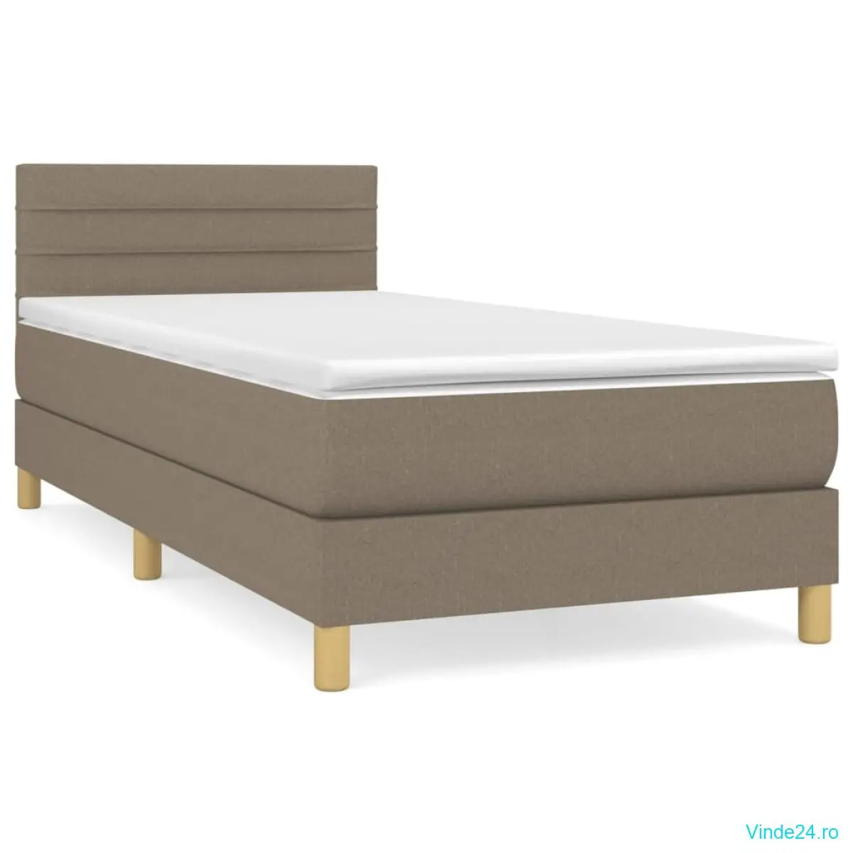 vidaXL Pat box spring cu saltea, gri taupe, 80x200 cm, textil