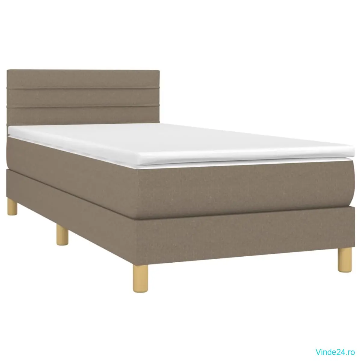 vidaXL Pat cu arcuri, saltea și LED, gri taupe, 180x200 cm, textil