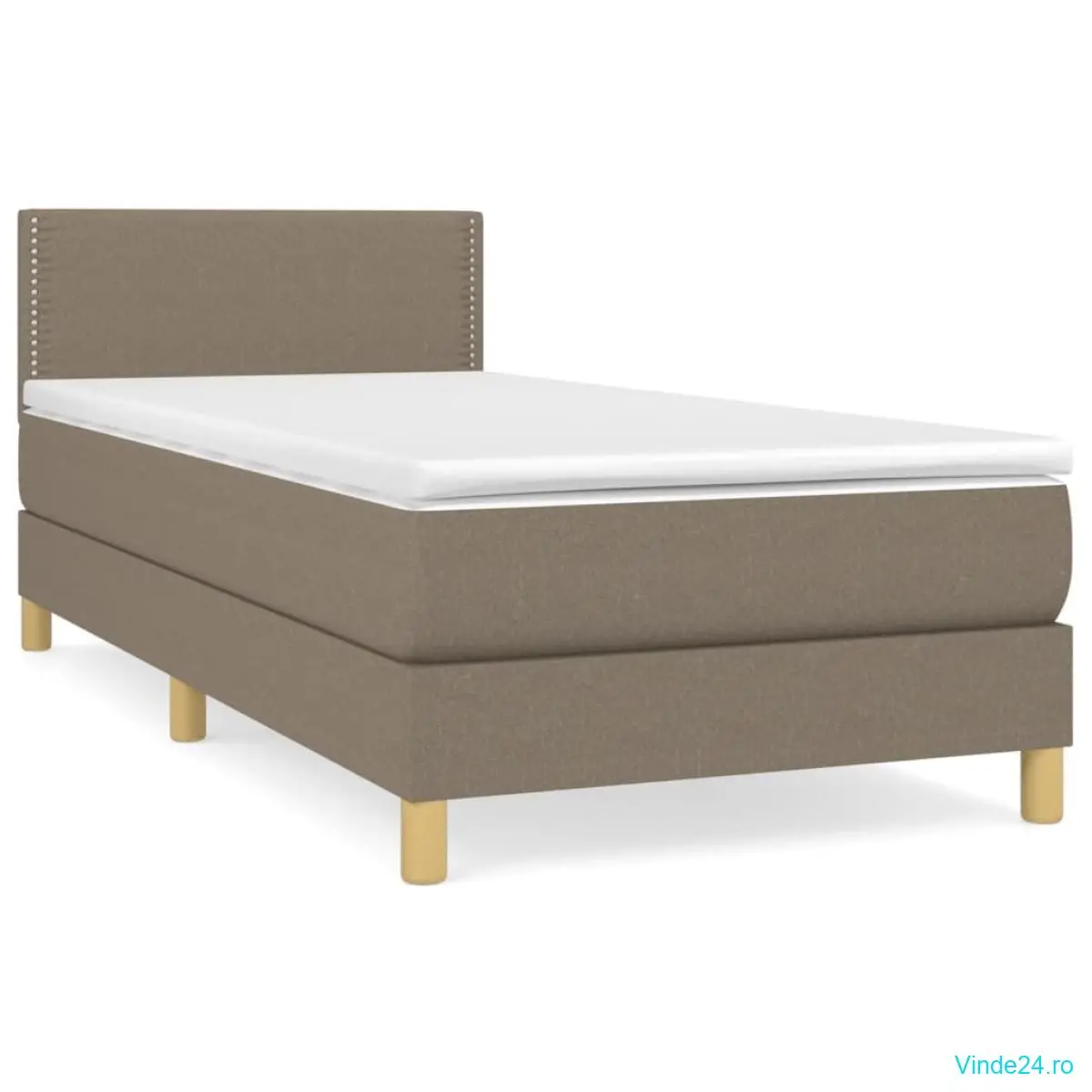 vidaXL Pat box spring cu saltea, gri taupe, 90x190 cm, textil