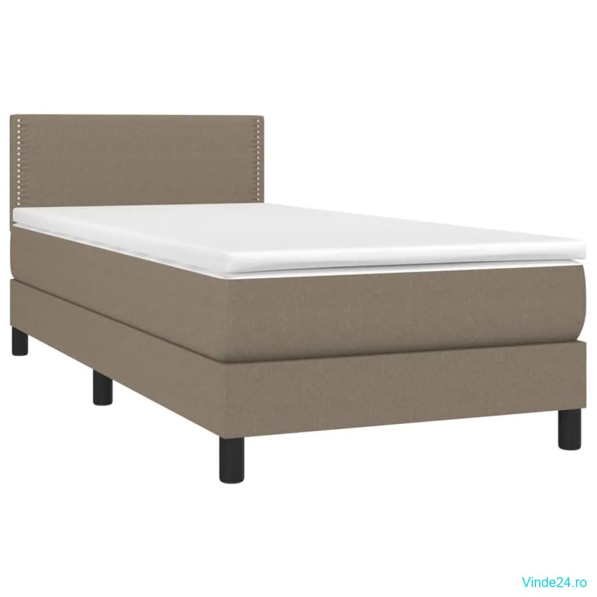 vidaXL Pat box spring cu saltea, gri taupe, 90x200 cm, textil