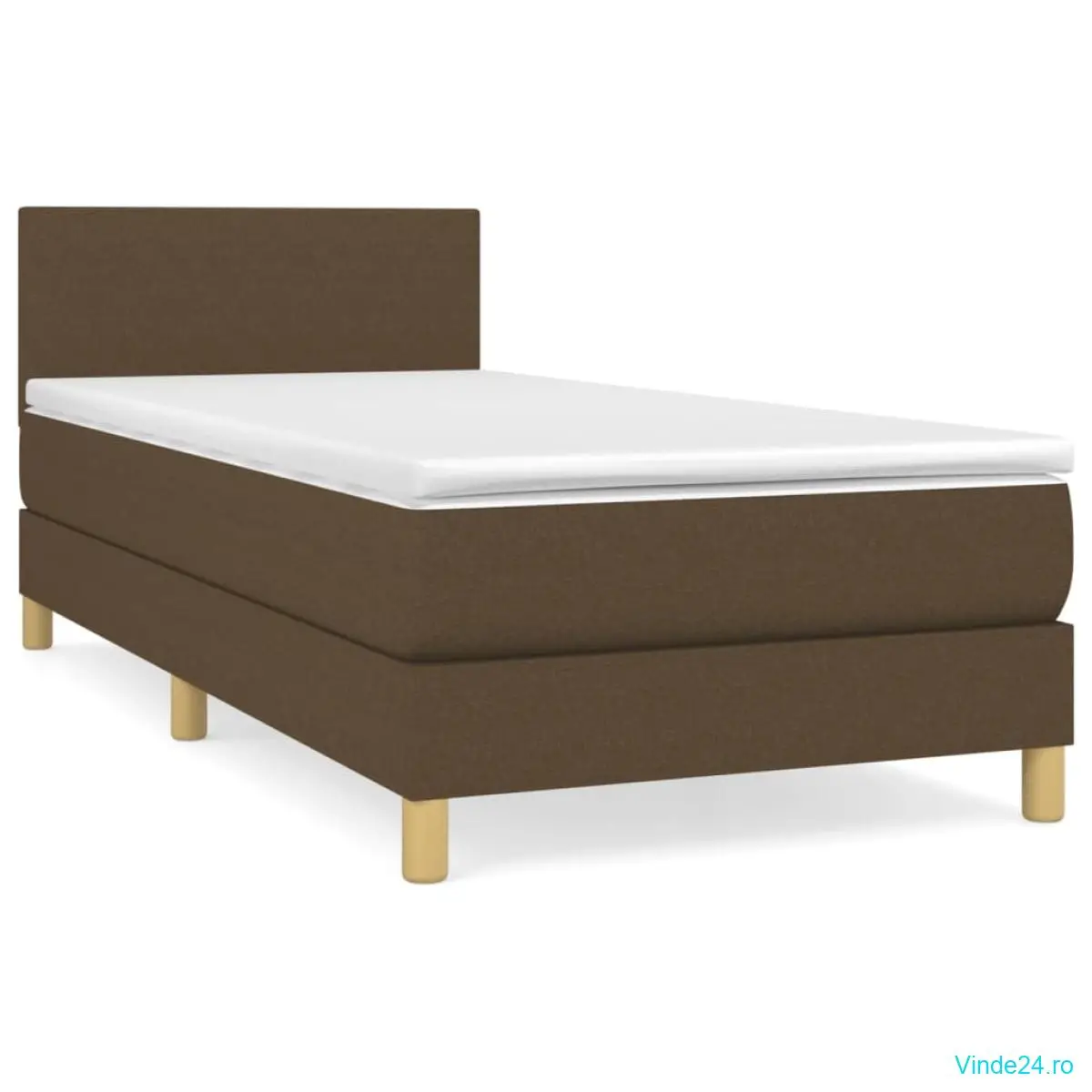 vidaXL Pat box spring cu saltea, maro închis, 80x200 cm, textil
